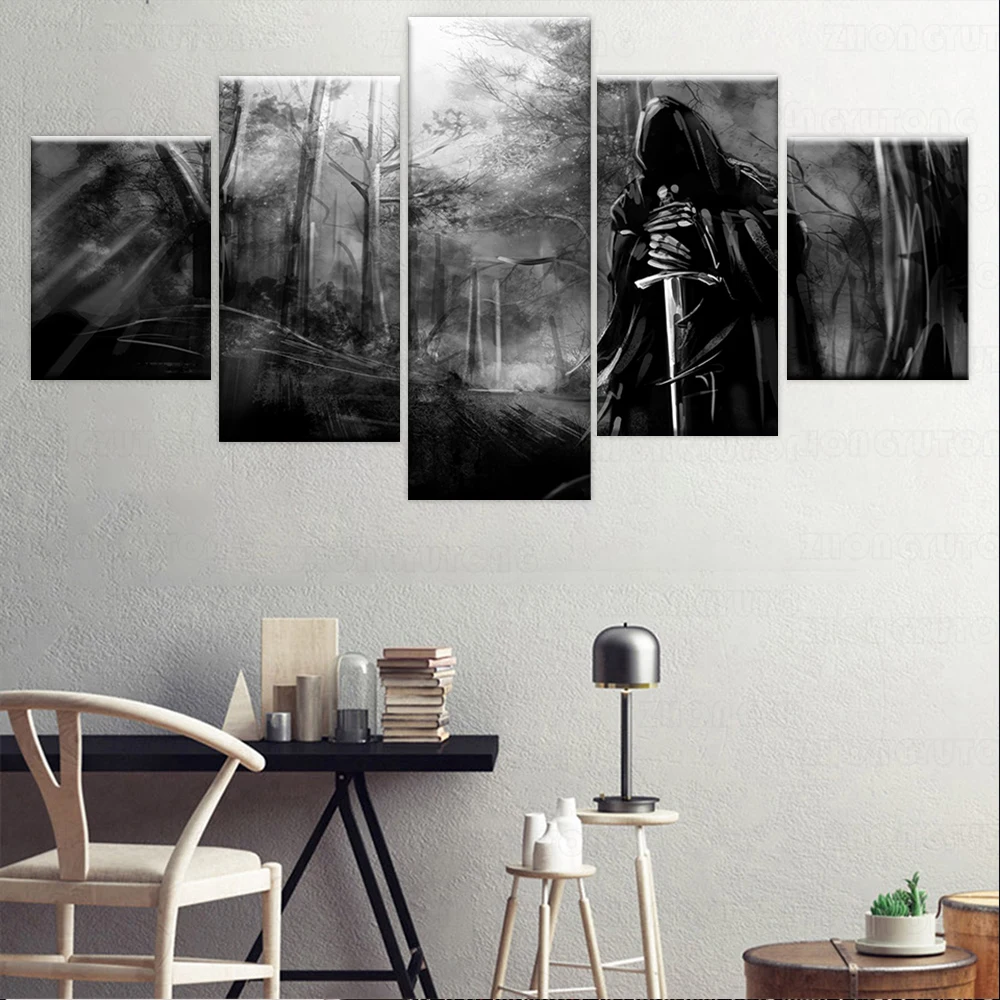 5 панельных холщовых картин, плакаты для игр, настенные художественные картины для гостиной, украшение для дома, рамка, Nazgul Модульная картина