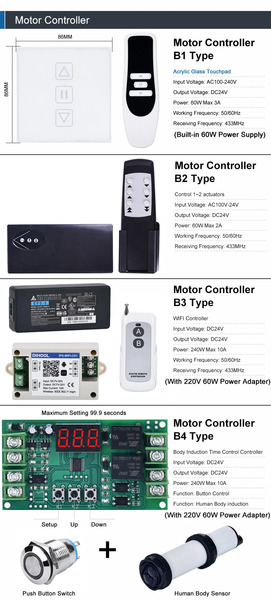 Максимальная нагрузка: 3000 НМаксимальная скорость: 88 мм/секция.Максимальный ход: 1600 ммТемпература: -30 ℃ ~ + 60 ℃Шум: 25 дБМощность двигателя: 60 ВтДополнительная функция: IP66 | Датчик Холла | Встроенный магнит | IP67Дополнительная функция: верхний и нижний предельный сигнал обратной связиВнутренняя трубка: Алюминий высокой твердости | 27 элементов оксидированияКачество:★★★★★