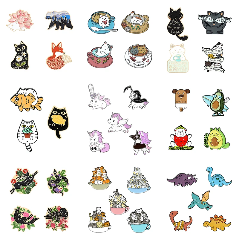 Набор брошей из 3-5 шт., эмалированные булавки для рюкзаков и лацканов в виде кота, лисы, змеи, динозавра, животных, милые металлические значки, ювелирные изделия Gfit 2021, оптовая продажа