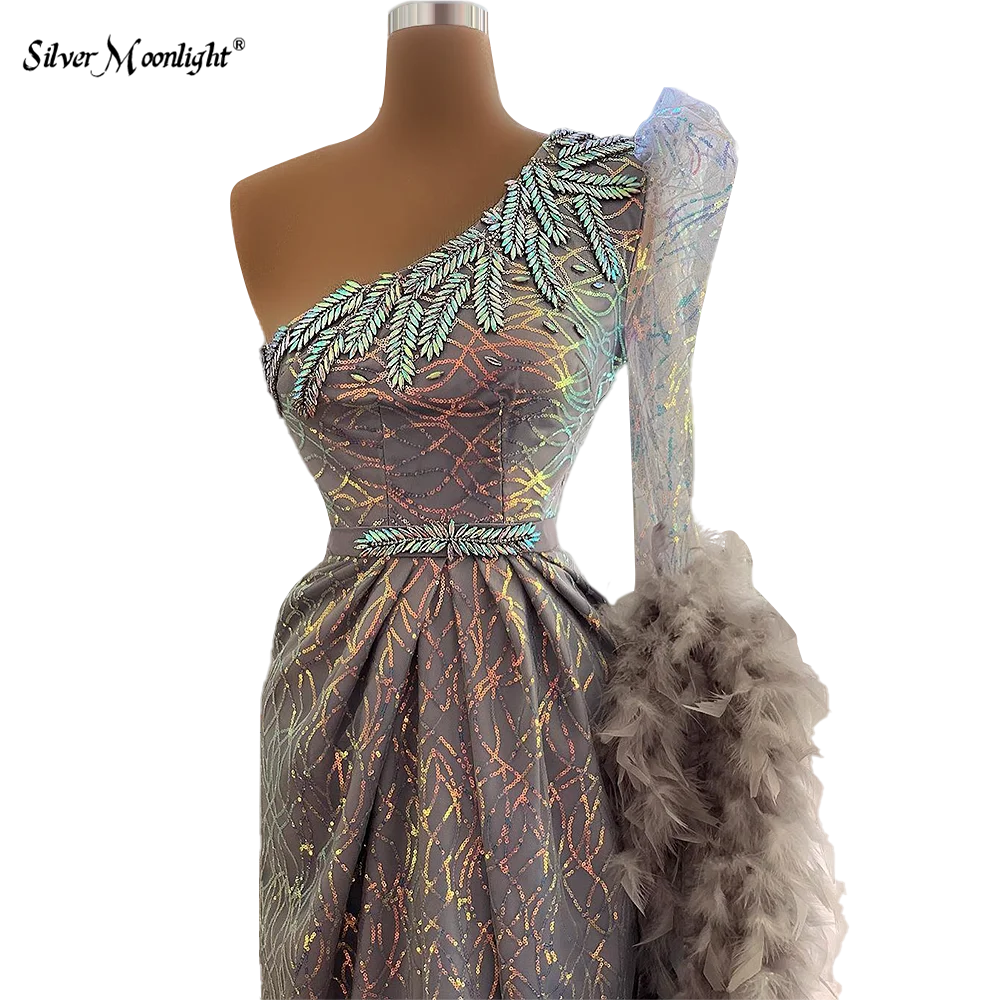 Арабское вечернее платье женское на одно плечо с бисером, кружевное...