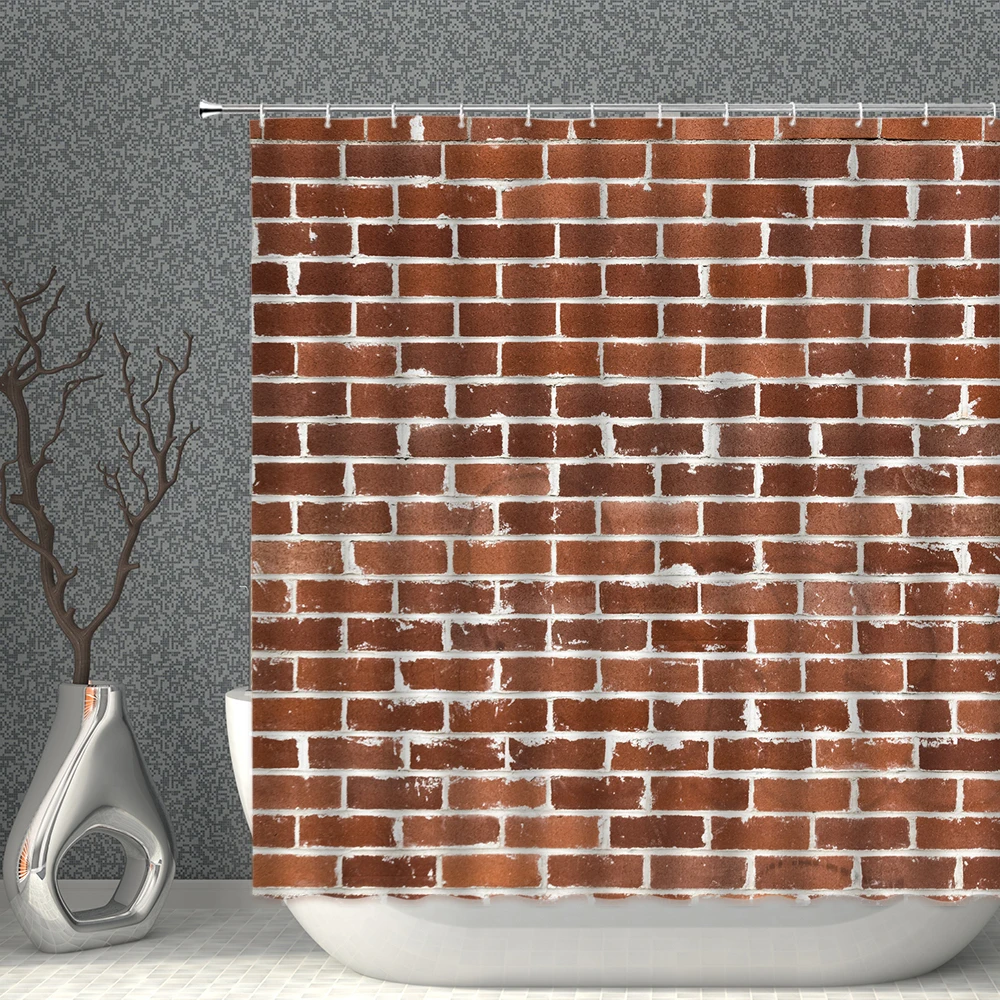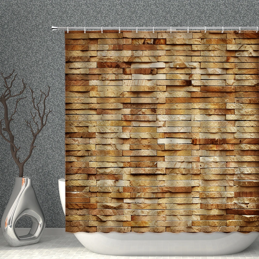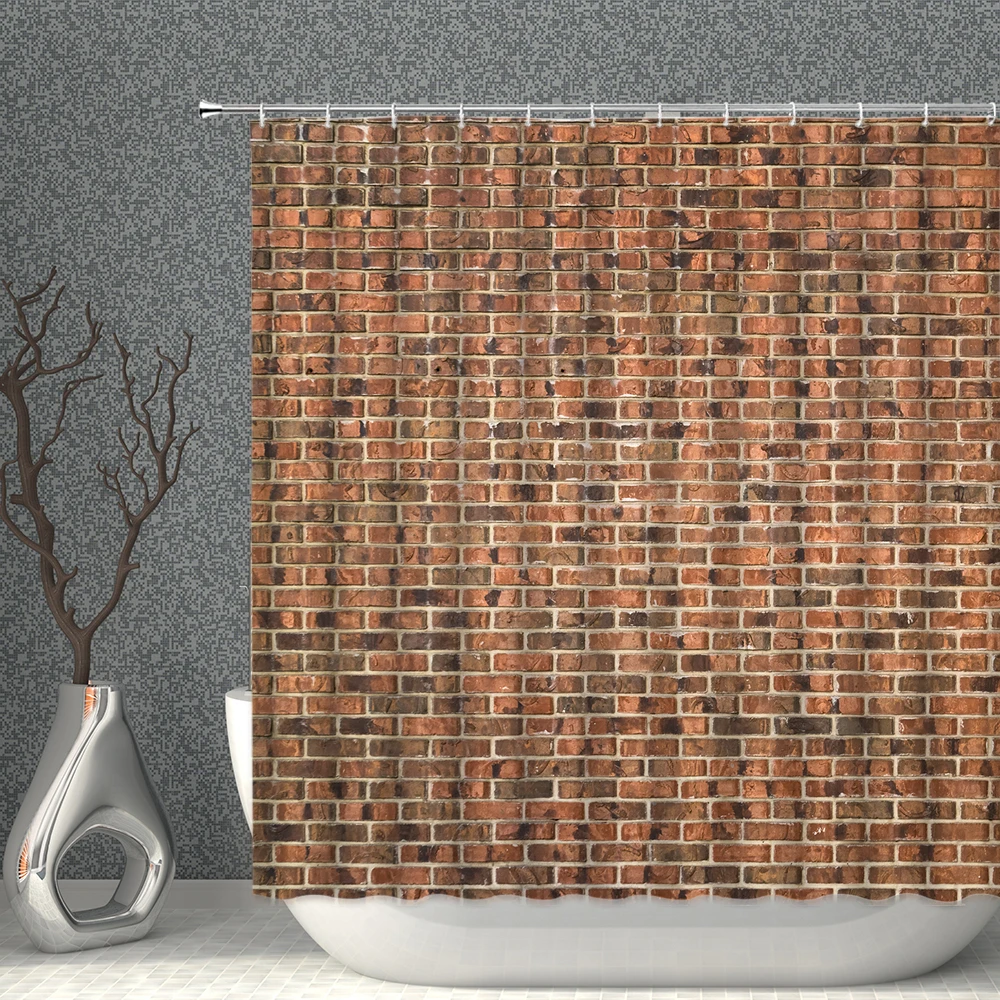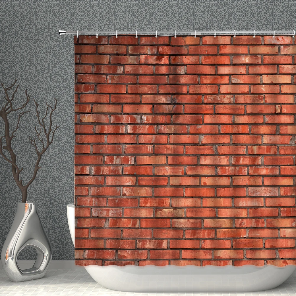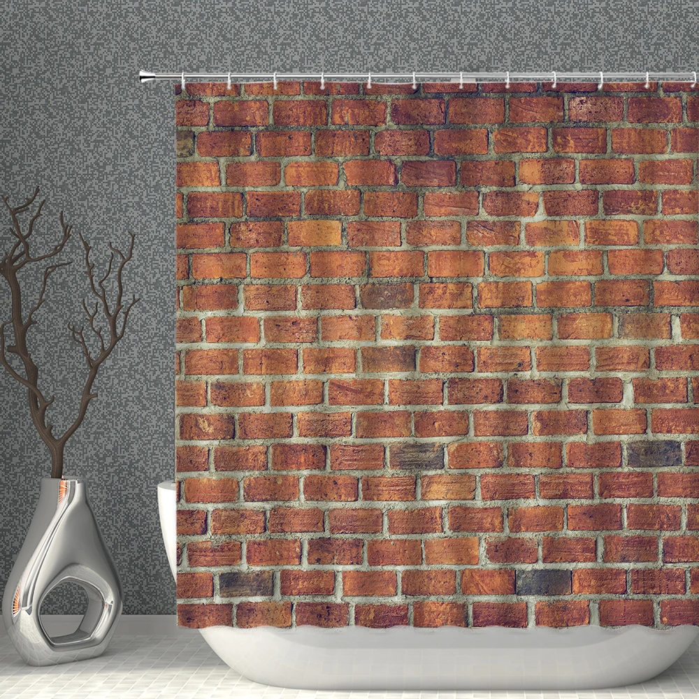 Занавеска для душа с кирпичным узором, водонепроницаемая тканевая занавеска для ванны с каменным узором, перегородка для ванной, разные размеры, с крючками, домашний декор