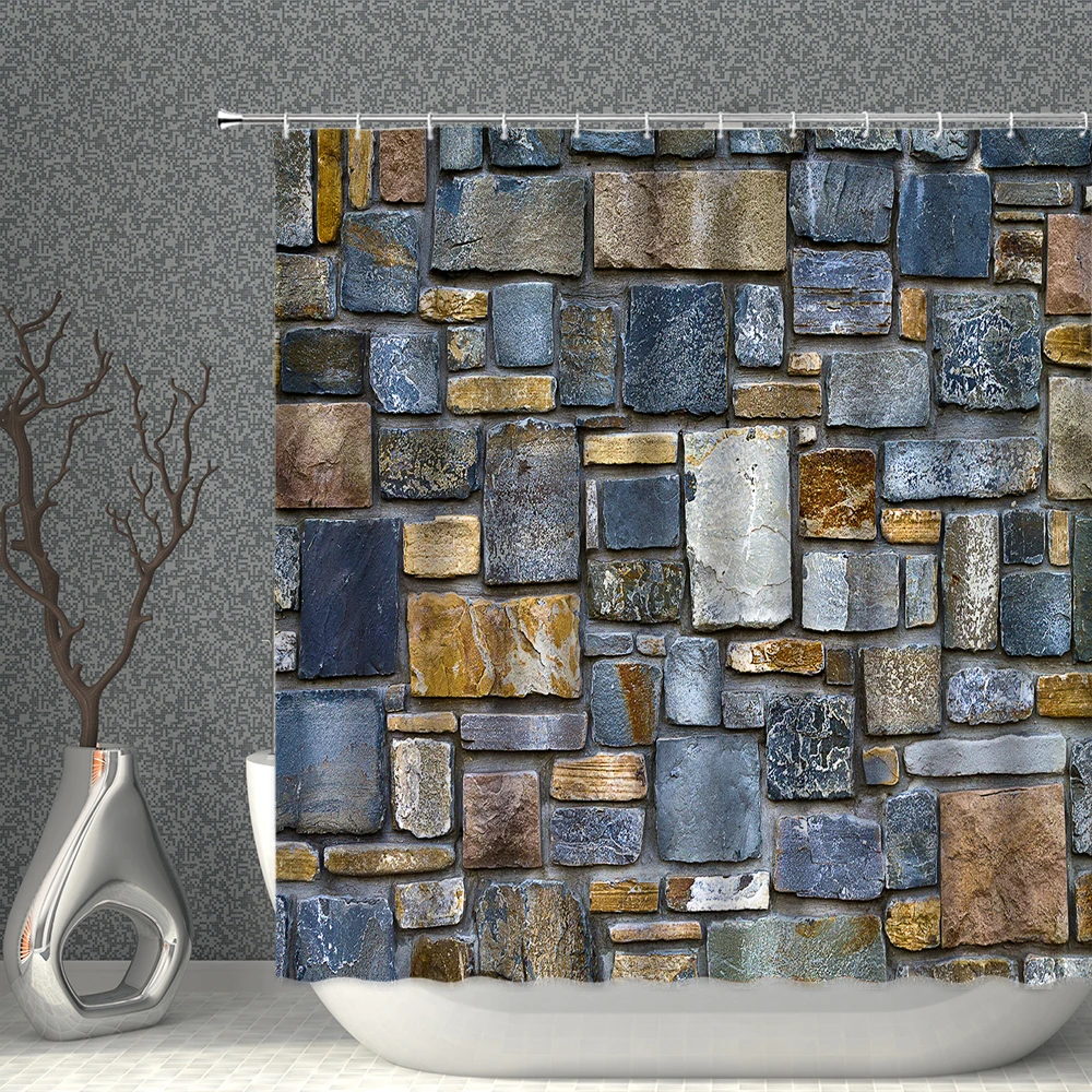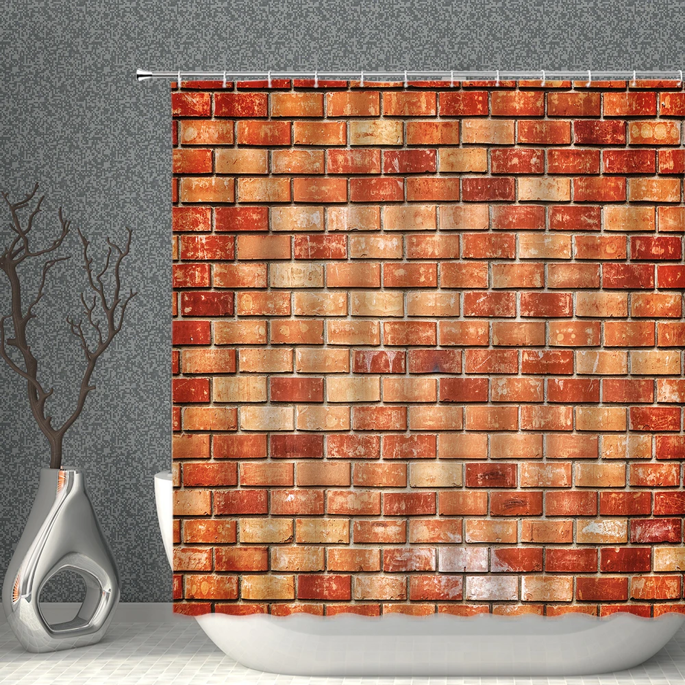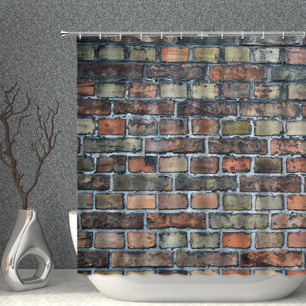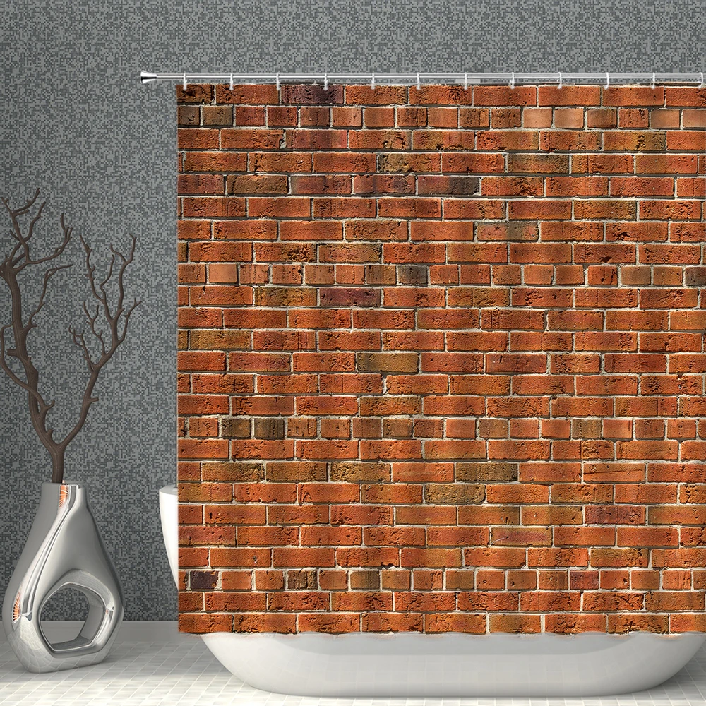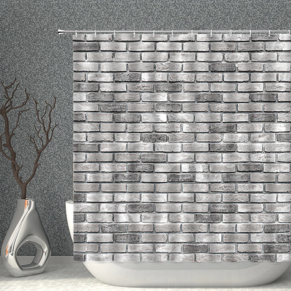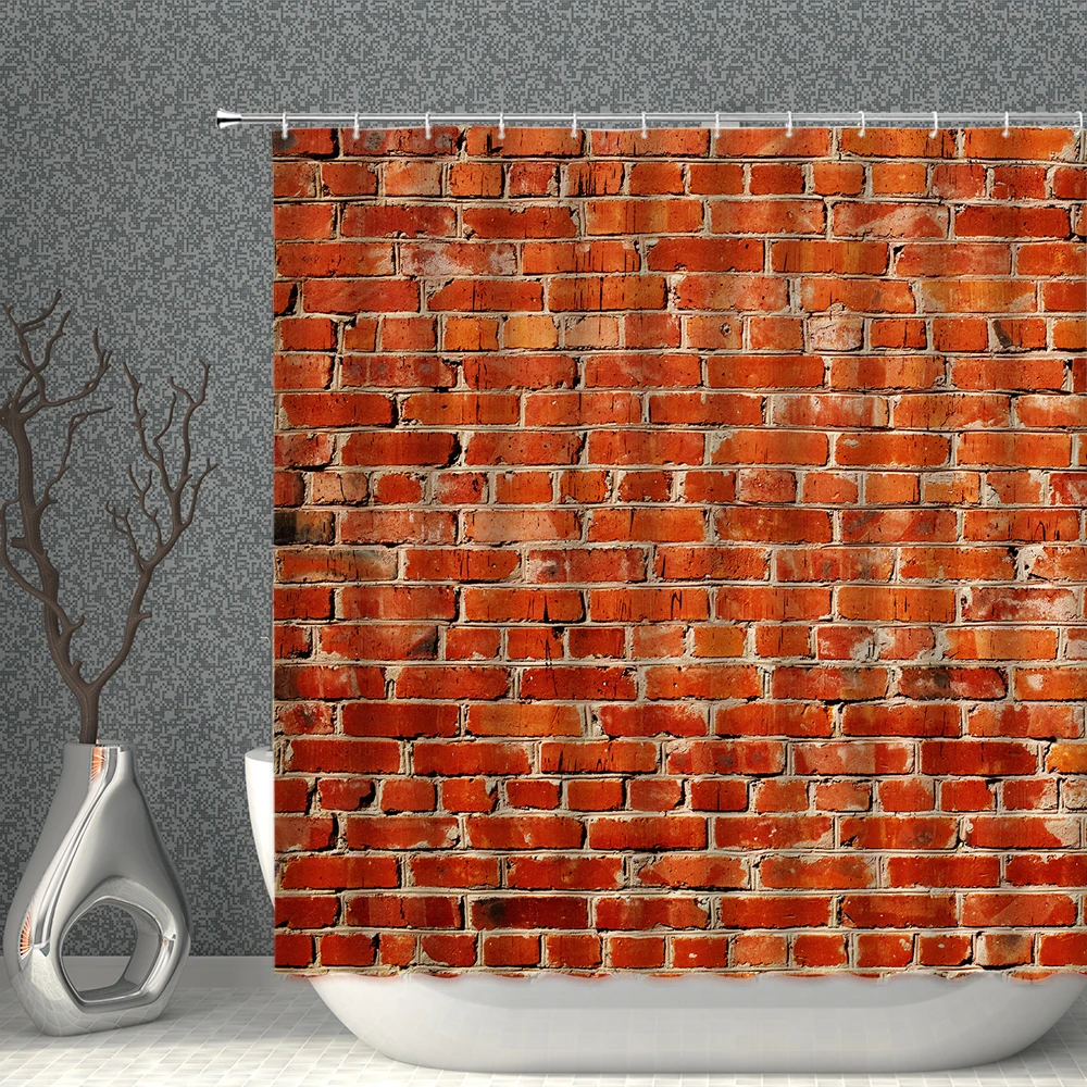 Занавеска для душа с кирпичным узором, водонепроницаемая тканевая занавеска для ванны с каменным узором, перегородка для ванной, разные размеры, с крючками, домашний декор