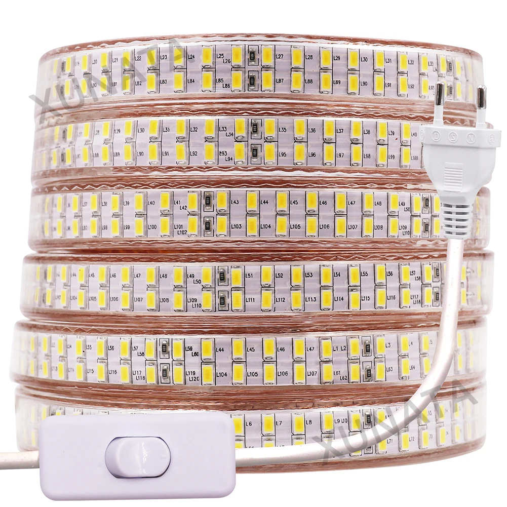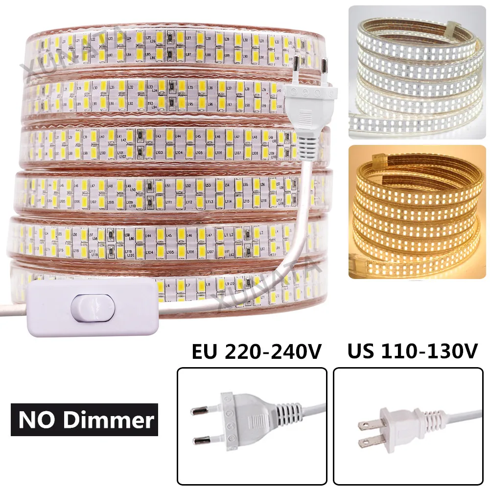 Диммируемая Светодиодная лента 5730 220 светодиодный 110 В, водонепроницаемая белаятеплая двухрядная Светодиодная лента 240 светодиодный одовм
