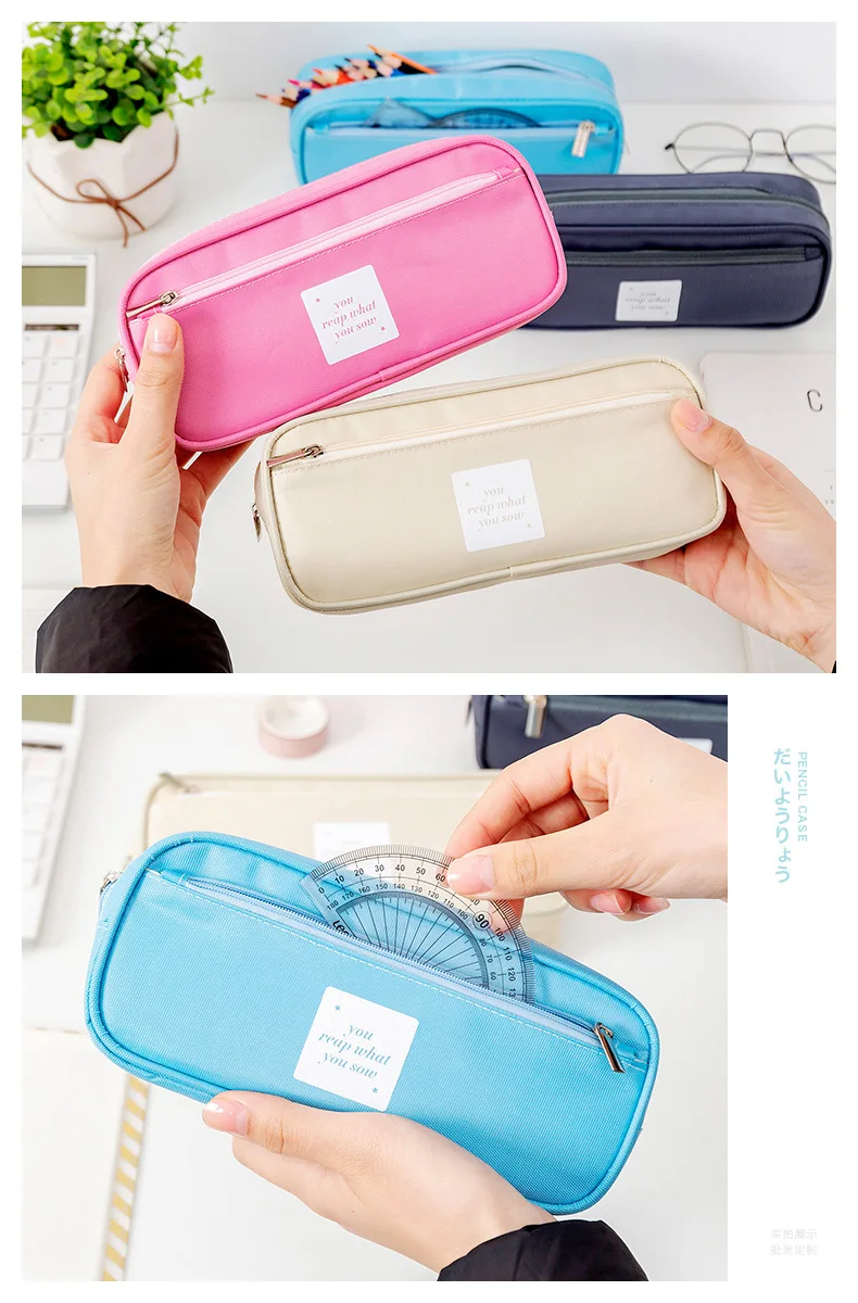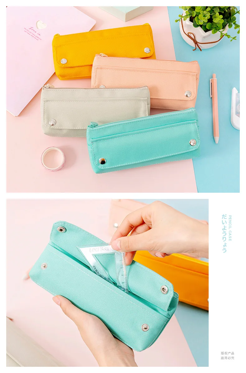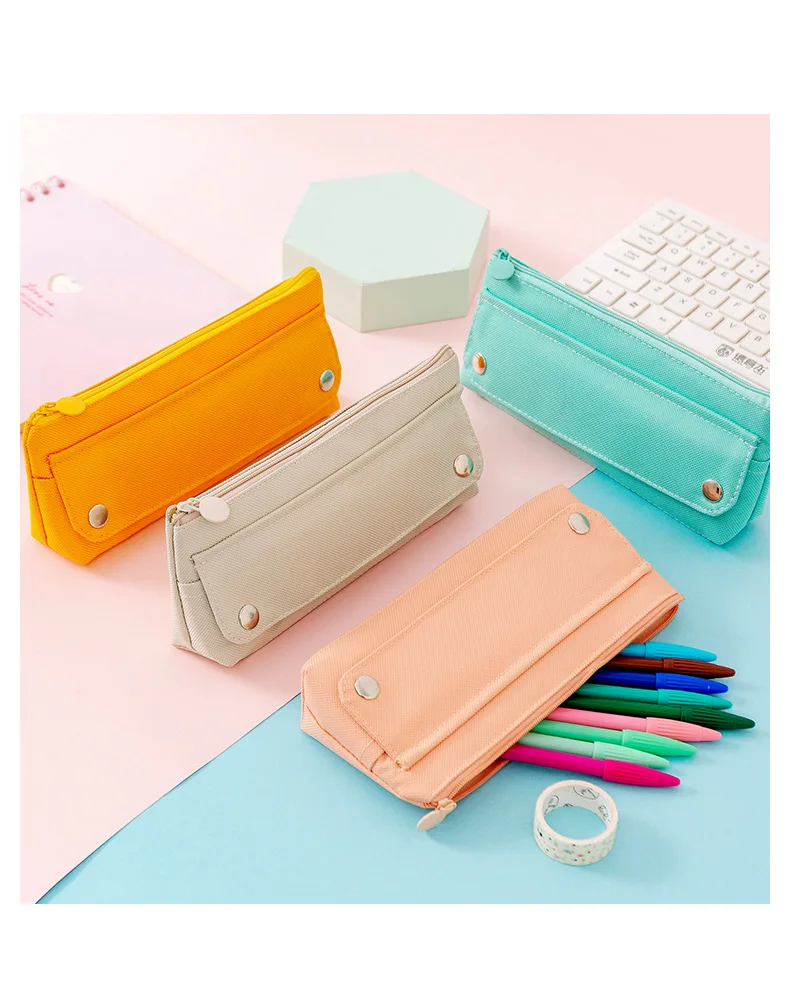 Пенал большого объема для кавайный чехол для карандаша, школьные Канцтовары карамельных цветов, милый холщовый чехол для ручка для девочек и студентов