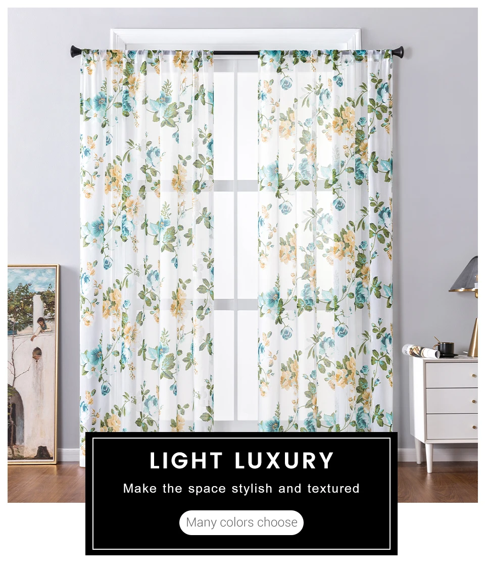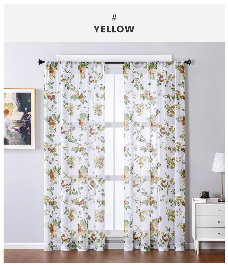 Тюлевые шторы с цветочным принтом для гостиной, спальни, кухни