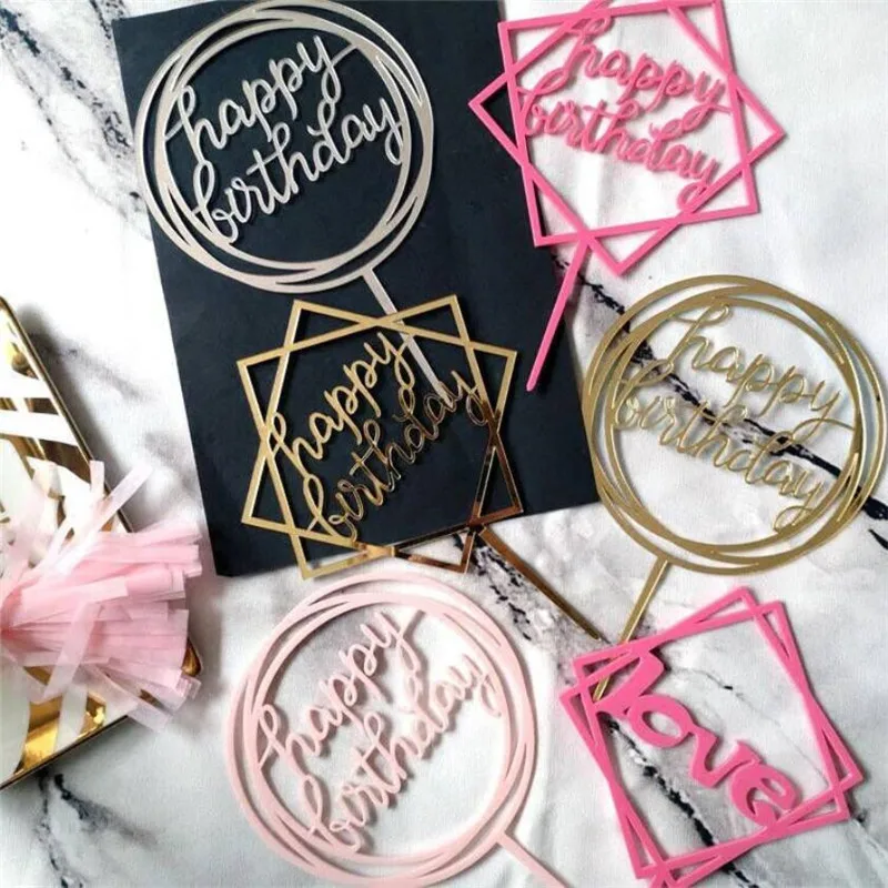 Новый Топпер для торта С Днем Рождения розовое золото сердце день рождения акриловый торт Топпер для детей день рождения торта украшения детский душ