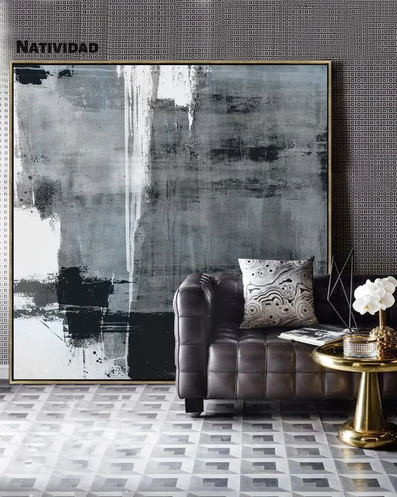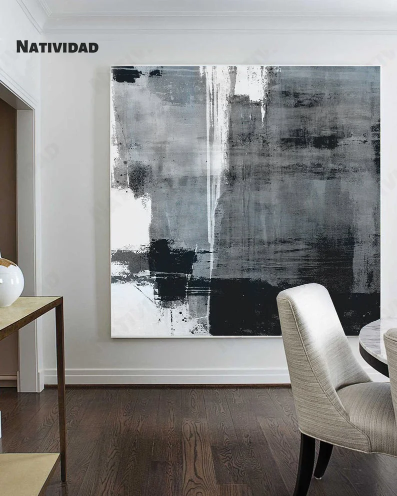 Нордический минимализм, темно-серый и белый масляные краски, черно-белая Краска на холсте, мраморный МУРАЛ, Краска на холсте, серая краска