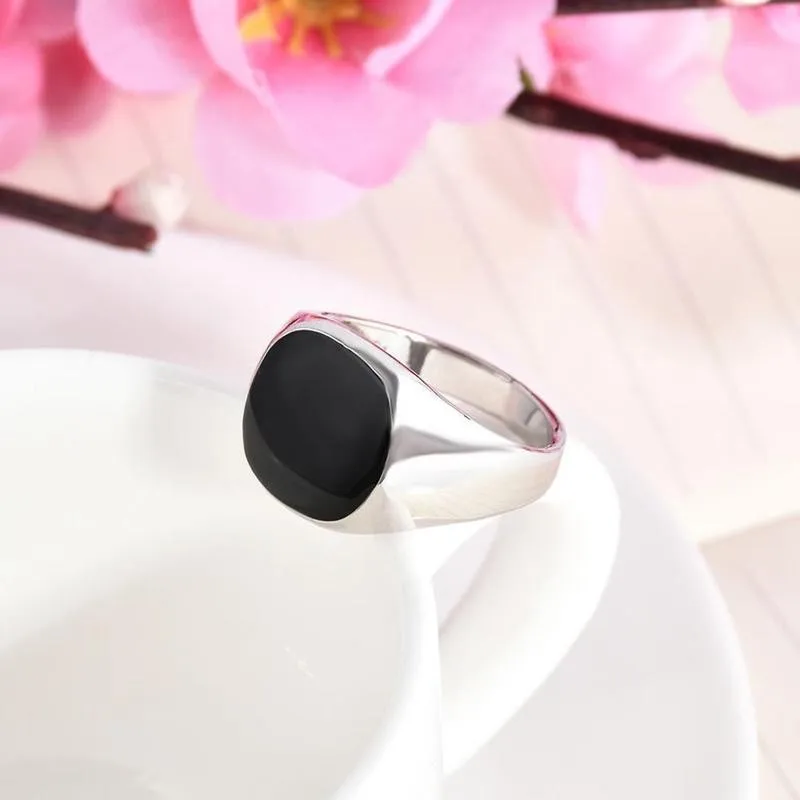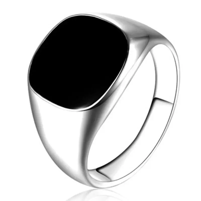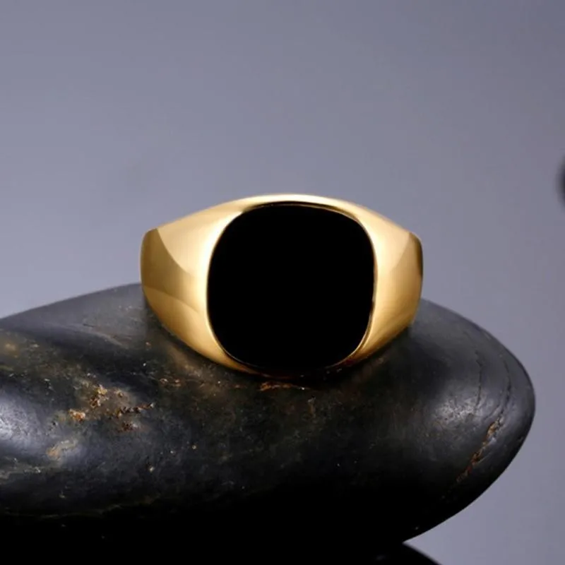 Кольцо печатка мужское из гладкой стали в стиле панк-рок