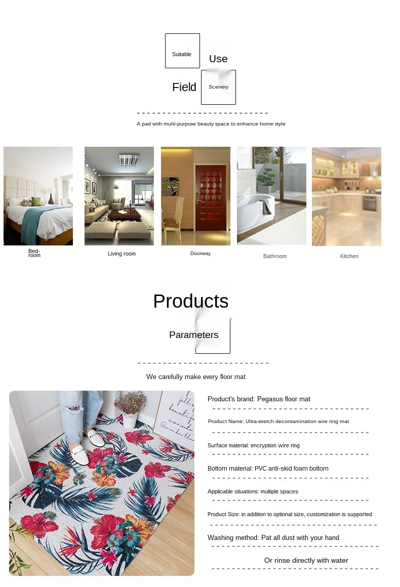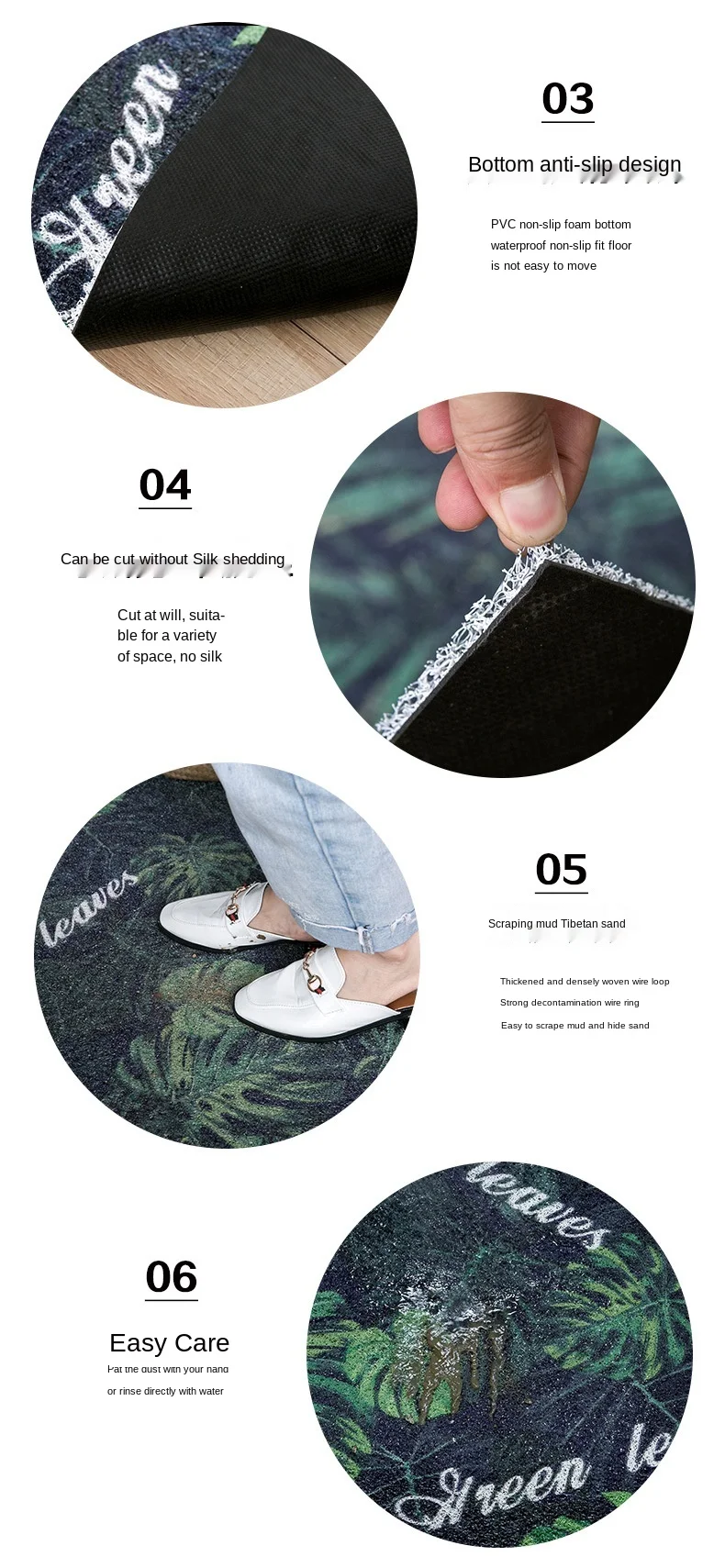 > Может быть настроен в соответствии с размером входа, пожалуйста, свяжитесь с нами, если вам нужно настроить. > Он изготовлен из экологически чистого материала и безвреден для людей. > Подошва изготовлена из противоскользящего материала, чтобы предотвратить скольжение коврика и защитить вашу безопасность, верхний материал может поглощать влагу от обуви, чтобы сделать полы чистыми и сухими, также удалите пыль, грязь, снег и т. д. > Можно свободно разрезать любые формы, которые вы хотите, и подходит для внутреннего и наружного входа, прихожей, гостиной, спальни, ванной комнаты и т. д. > Толщина составляет около 8 мм, он может полностью лежать на полу и не будет мешать открыванию и закрытию двери. > Когда коврик заполнен частицами грязи, вы можете просто очистить его с помощью пылесоса, или вы можете использовать садовый шланг на краску, затем дайте коврику полностью высохнуть на воздухе перед следующим использованием.