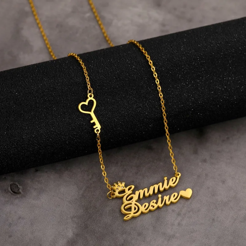 Подвески из нержавеющей стали, Корона из циркония, именное ожерелье для женщин, индивидуальный персонализированный узор в виде ключа, кулон-табличка с именем
