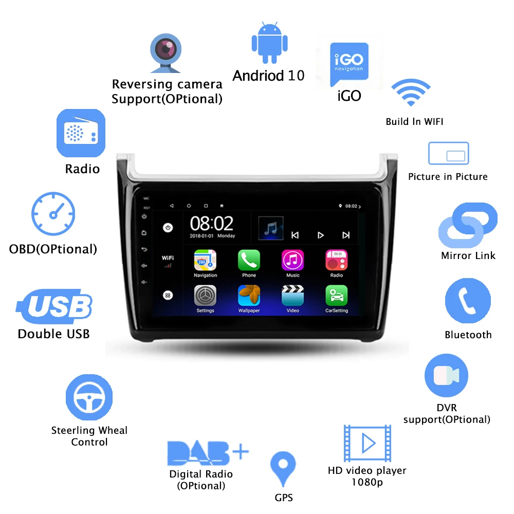Особенности: 1,9 дюймовый HD-радио MP5-плеер сенсорный экран. 2. Смартфоны Android для зеркальной связи через Wi-Fi и USB,Iphone для зеркальной связи через Wi-Fi 3. Поддержка звонков в режиме громкой связи, музыкального плеера, автоматической загрузки телефонных книг. 4. Интернет-развлечения, встроенный модуль Wi-Fi, поддерживает подключение точек доступа Wi-Fi к Интернету. 5. Встроенный модуль GPS, поддержка онлайн-и офлайн-навигации через приложение Google Play app market. С подключением к Wi-Fi Google Maps можно использовать идеально, вы можете пойти куда угодно и никогда больше не заблудиться. 6. Этот вход автоматически питает заднюю камеру, когда автомобиль переключается в заднюю сторону, и отображает изображение на экране устройства. 7. Поддержка функции обучения кнопкам рулевого колеса автомобиля, с помощью нее вы можете управлять необходимыми функциями с помощью рулевого колеса, что более удобно. 8.FM-радио: онлайн-музыка вы можете передать музыку на автомобильную стереосистему через FM, чтобы наслаждаться оригинальным автомобильным стереозвуком с 18 предустановленными станциями. 9. Регистратор: вы можете выбрать регистратор, а в автомобиле есть функция воспроизведения, доказательства можно сохранить. 10. Двойной вход USB-адаптера. 11. Поддержка файлового менеджера: поддержка загрузки, установки и удаления более тысяч приложений android. 12. Поддержка языков, до 70 национальных языков. Характеристики: Система: Android 10/9.1 ЦП: A7 1.3GHZx4 Тип экрана: емкостный сенсорный экран Размер экрана: 9 дюймов Разрешение экрана: 1024x600 ОЗУ (память): четырехъядерный 2 ГБ/1 Гб ПЗУ: 16 Гб/32 ГБ Материал: АБС-пластик + металл Выходная мощность: 4*45 Вт Зеркальная ссылка: Android/IOS Радиодиапазон: FM 87,5-108 м WIFI: поддержка Аудиоформат: APE/FLAC/WAV/MP3/WMA Формат видео: MKV/RMVB/AVI/MP4/MDV Формат изображения: PNG/JPEG/JPG/GIF/WBMP/BNP Язык: английский/русский/Польский/Испанский/Датский/немецкий/французский/Филиппинский/голландский/Чешский/румынский/Португальский/японский/Турецкий и т. Д. · Поддержка камеры заднего вида (опционально) · Поддержка DVR (опционально) · Поддержка DAB + (опционально) · Поддержка TMPS (опционально) · Поддержка OBD (опционально)