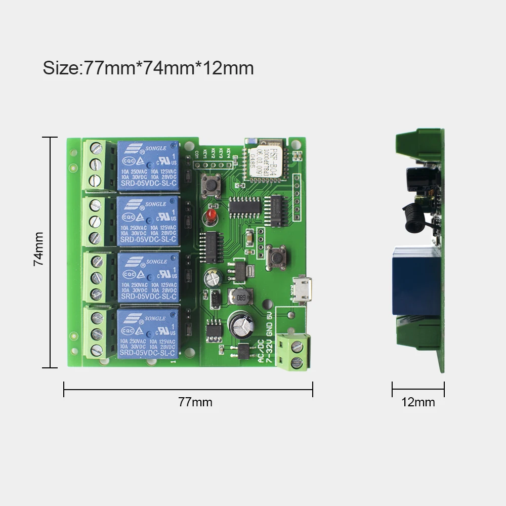 4-полосный релейный модуль Wi-Fi пульт дистанционного управления бе...
