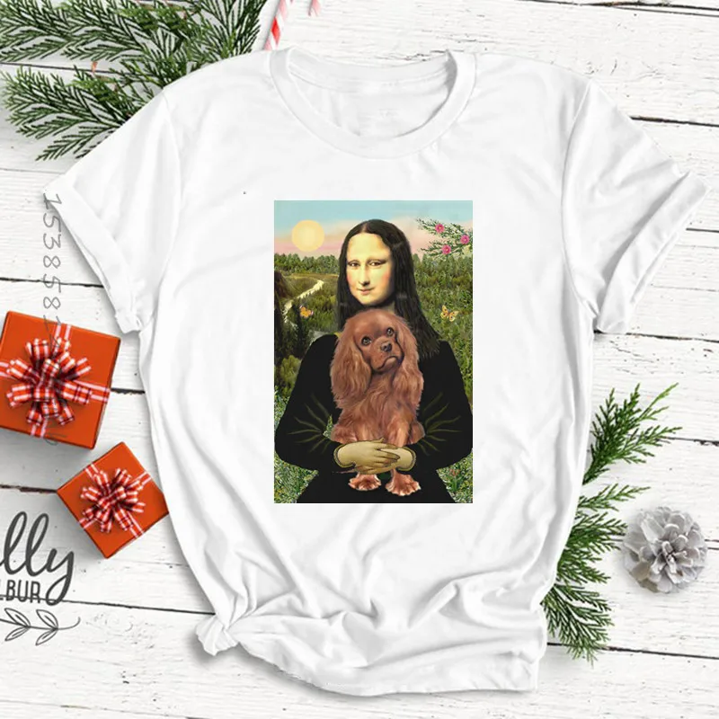 Премиум-класса для женщин держатель-Французский бульдог Чарльз спаниель печатных футболки летняя мода 90s Ullzang Harajuku животных Собака укороченная футболка