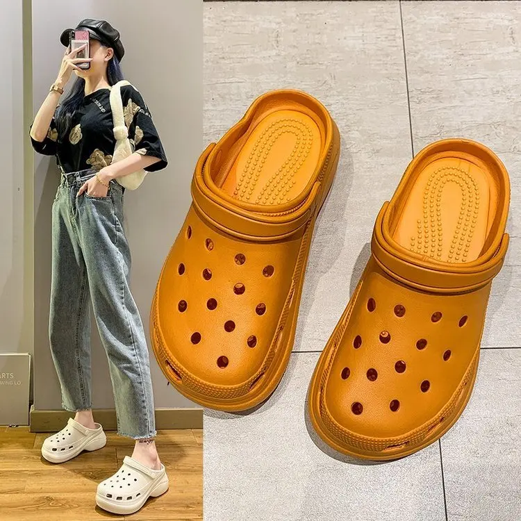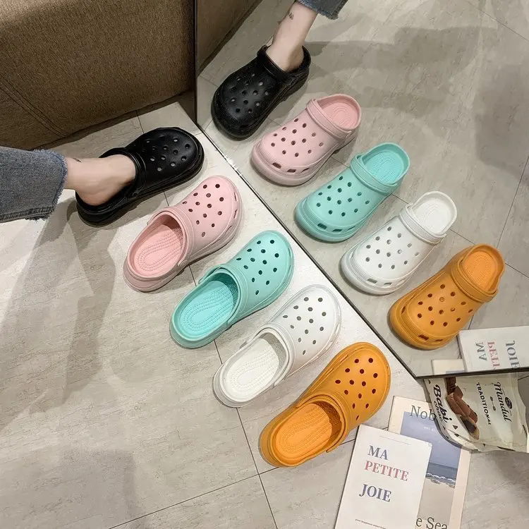 Сандалии женские летние на платформе, садовые Кроксы, пляжные тапоч...