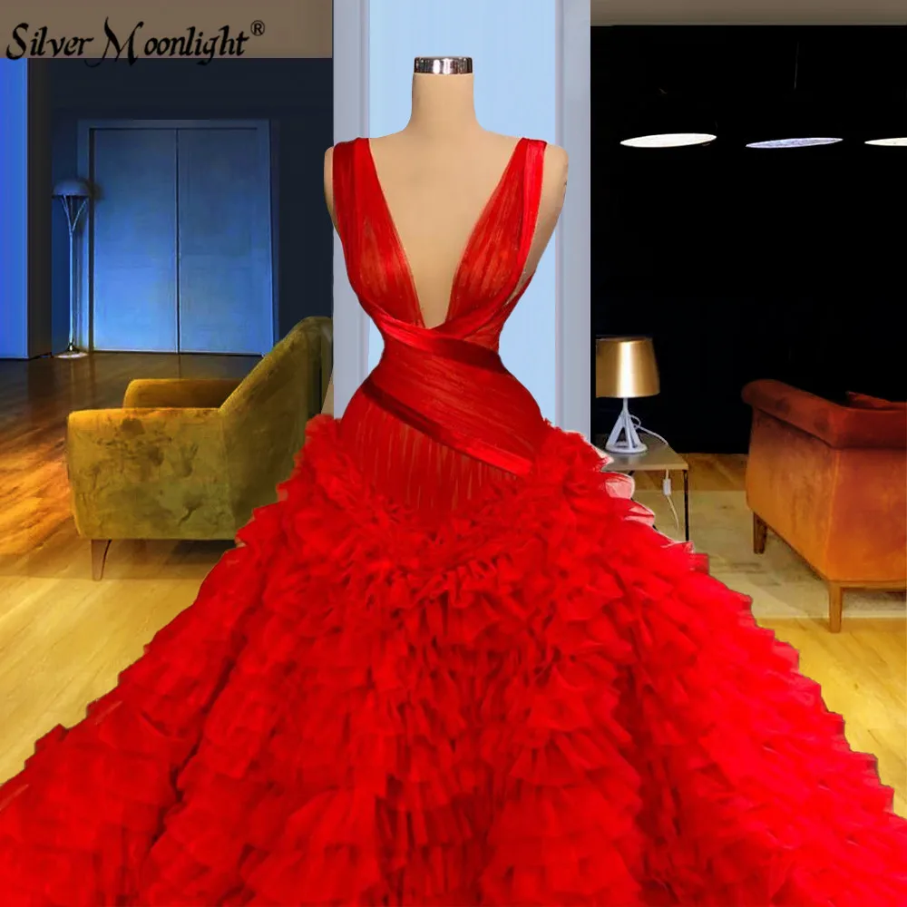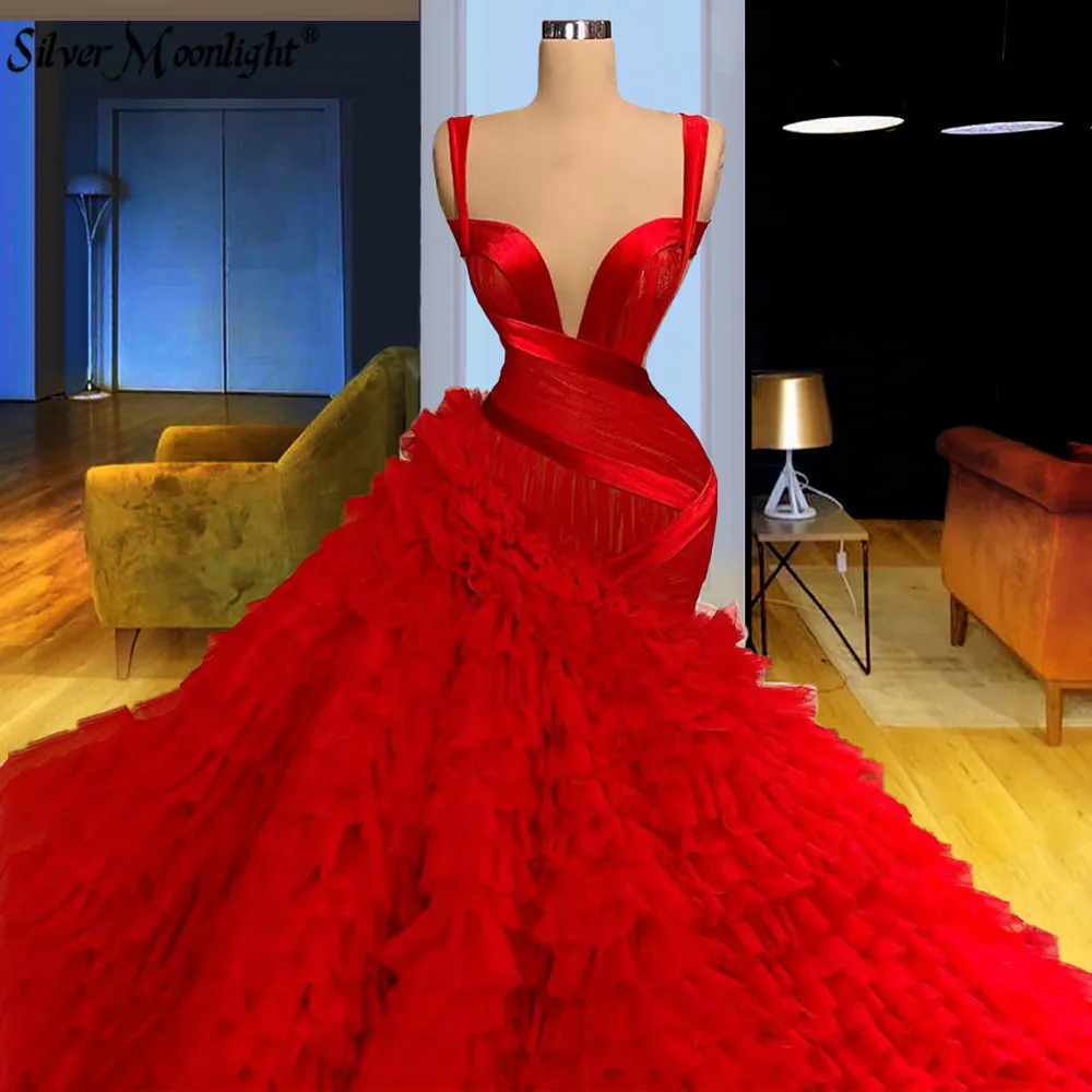 Женские платья с открытыми плечами, красные вечерние платья из тюля...