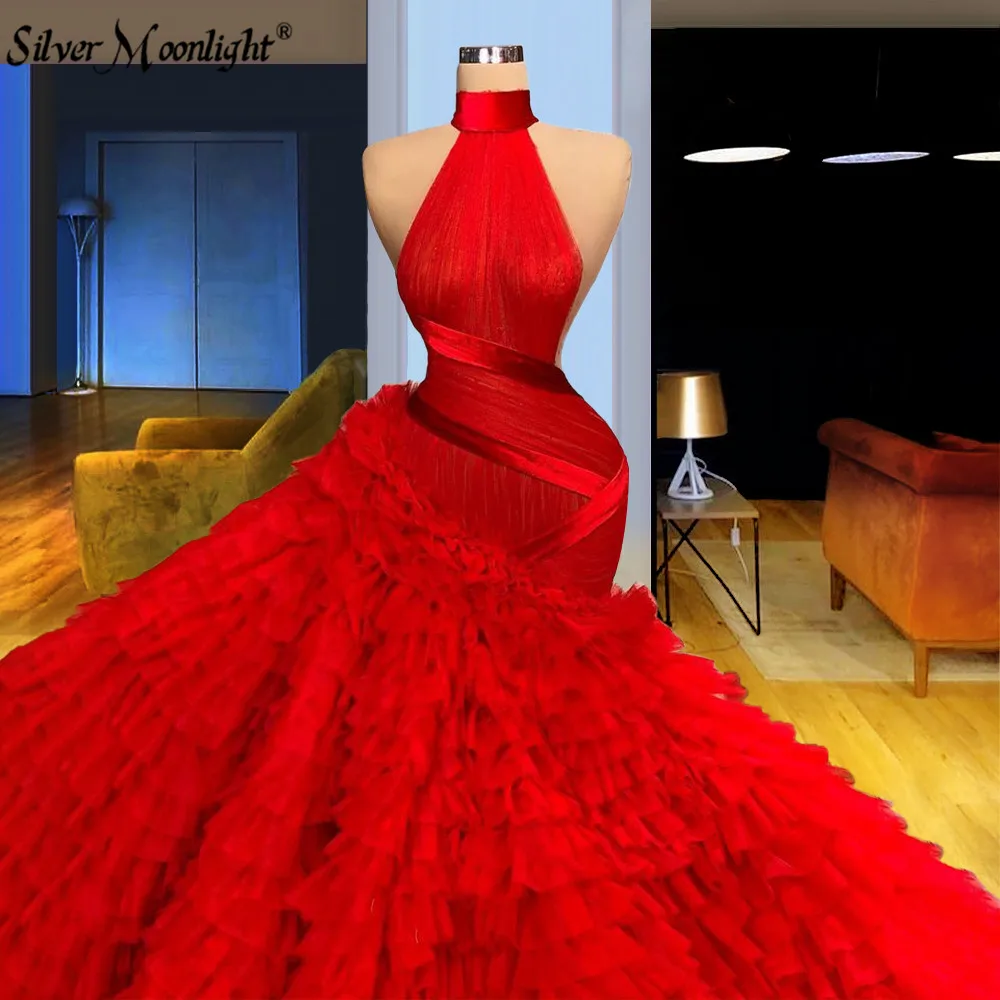 Великолепное африканское красное длинное свадебное платье-Русалка пышное свадебное платье с открытыми плечами, иллюзия, арабское свадебное платье принцессы