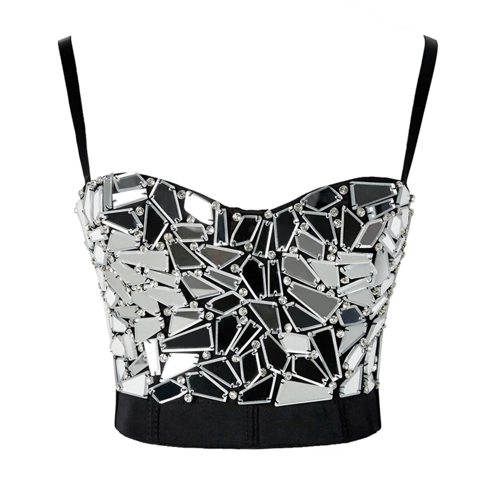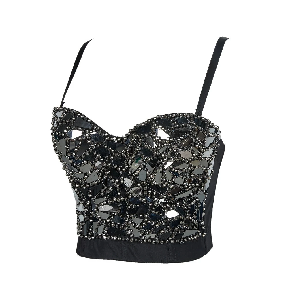 Сексуальный женский Блестящий укороченный Топ Стразы Блестящий серебряный Топ с блестками для праздника и вечеринки бра для танцев на сцене и ночного клуба