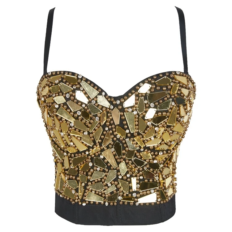 Для женщин золотистого или серебристого цвета со стразами Стразы укороченные топы с бриллиантовым блеском сексуальные корсеты и бюстье для рейв фестиваль