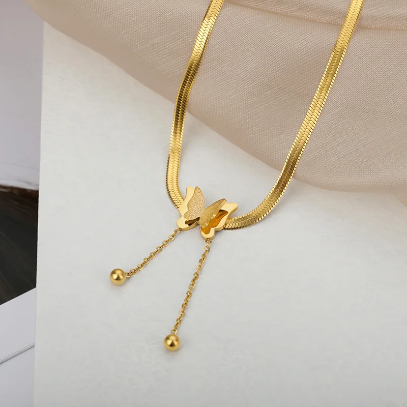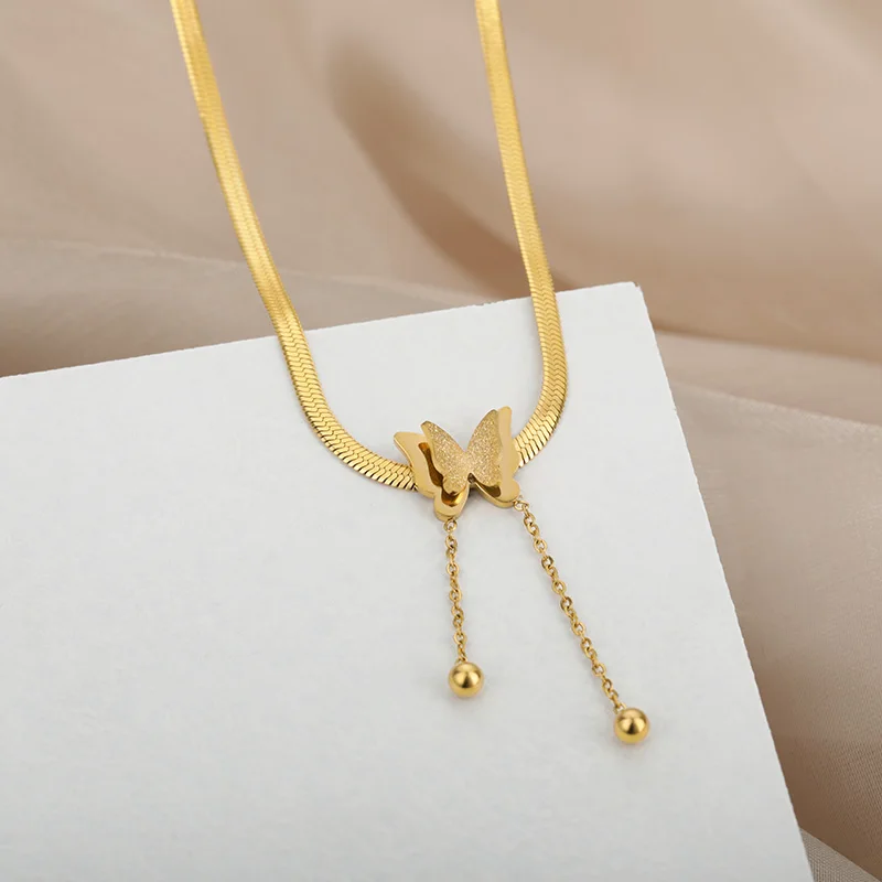 Ожерелье с бабочкой для женщин, цепочки со змеиным плетением из нержавеющей стали золотого цвета в Корейском стиле, винтажные подвески, чокер, женское ювелирное изделие