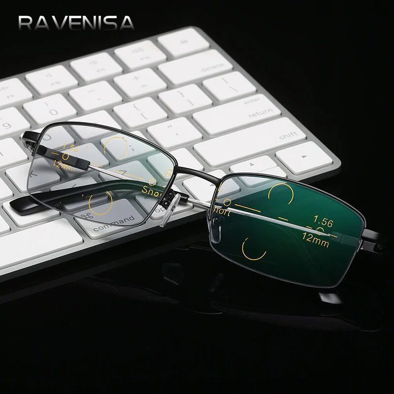 RAVENISA бренд прогрессивные 2021 очки для чтения анти-синий светильник объектив Mermory металлические очки для Для мужчин Для женщин Для мужчин + 250