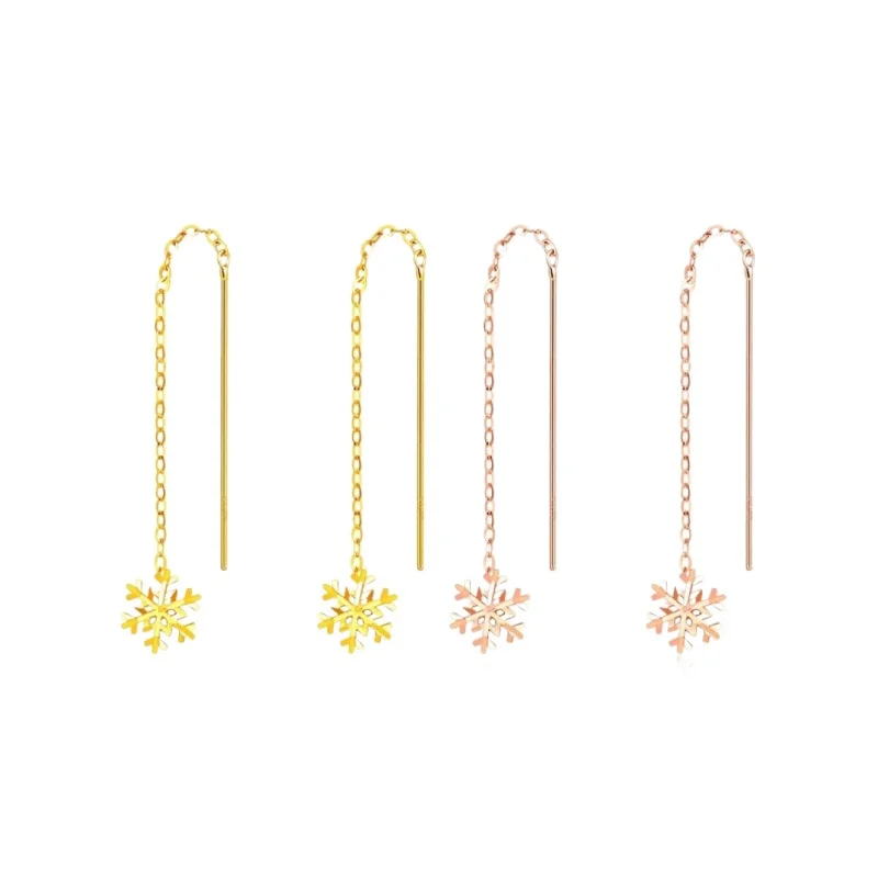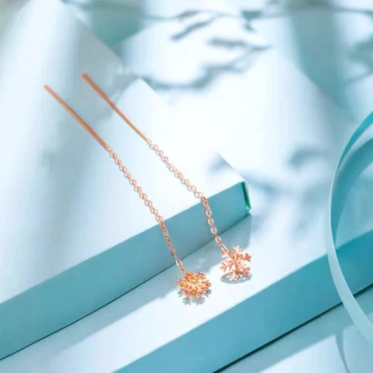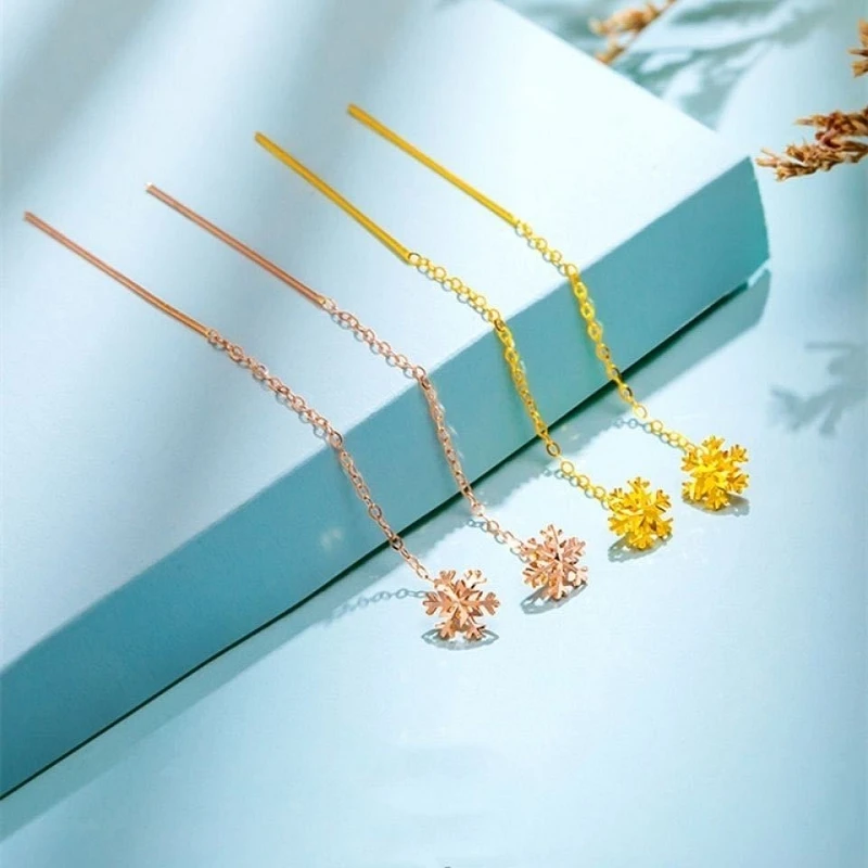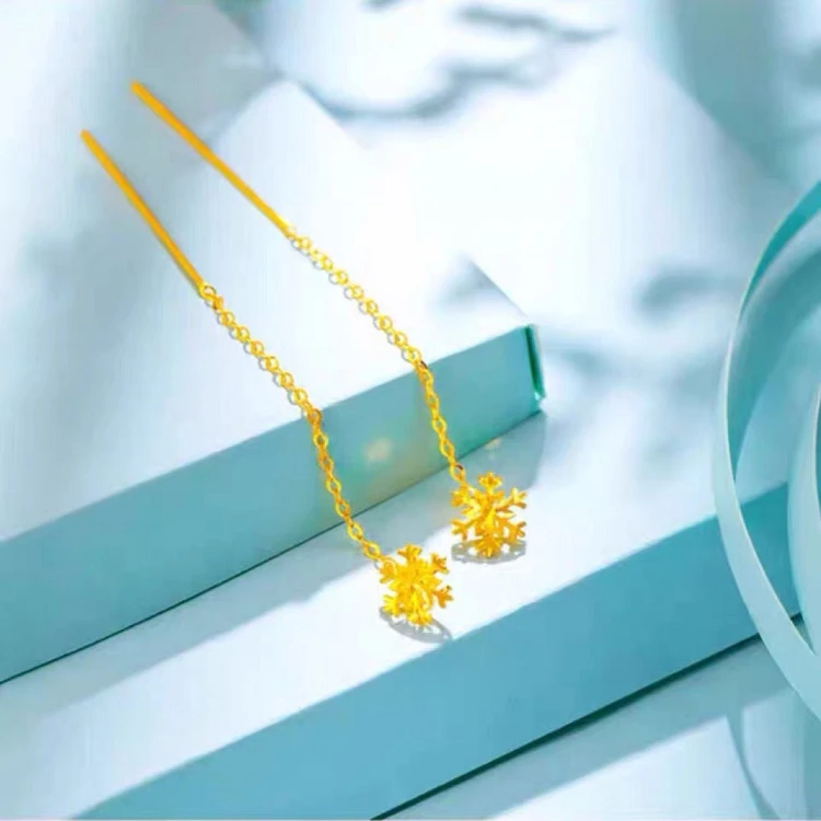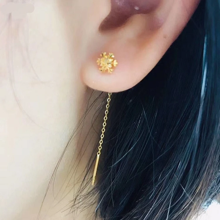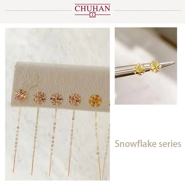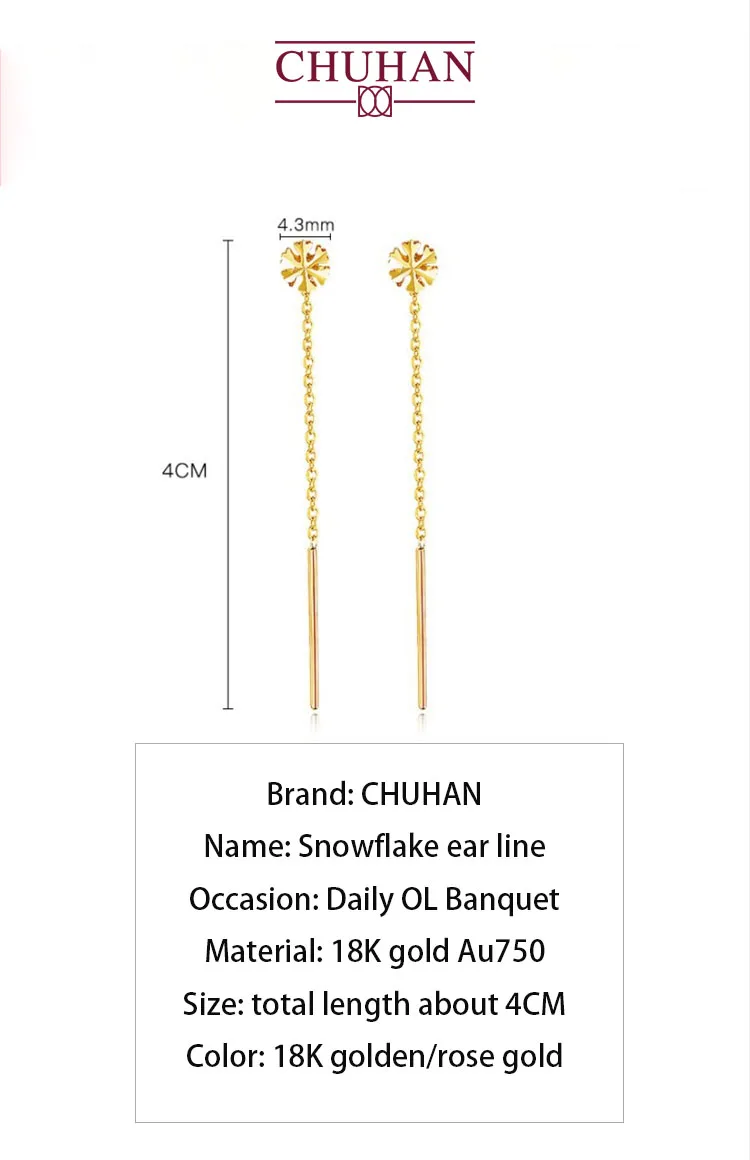 CHUHAN чистый 18 К золото Снежинка уха линия женских туфель-лодочек с бантом реальное AU750 подарочные украшения для ушей для свиданий; Вечерние ювелирные украшения