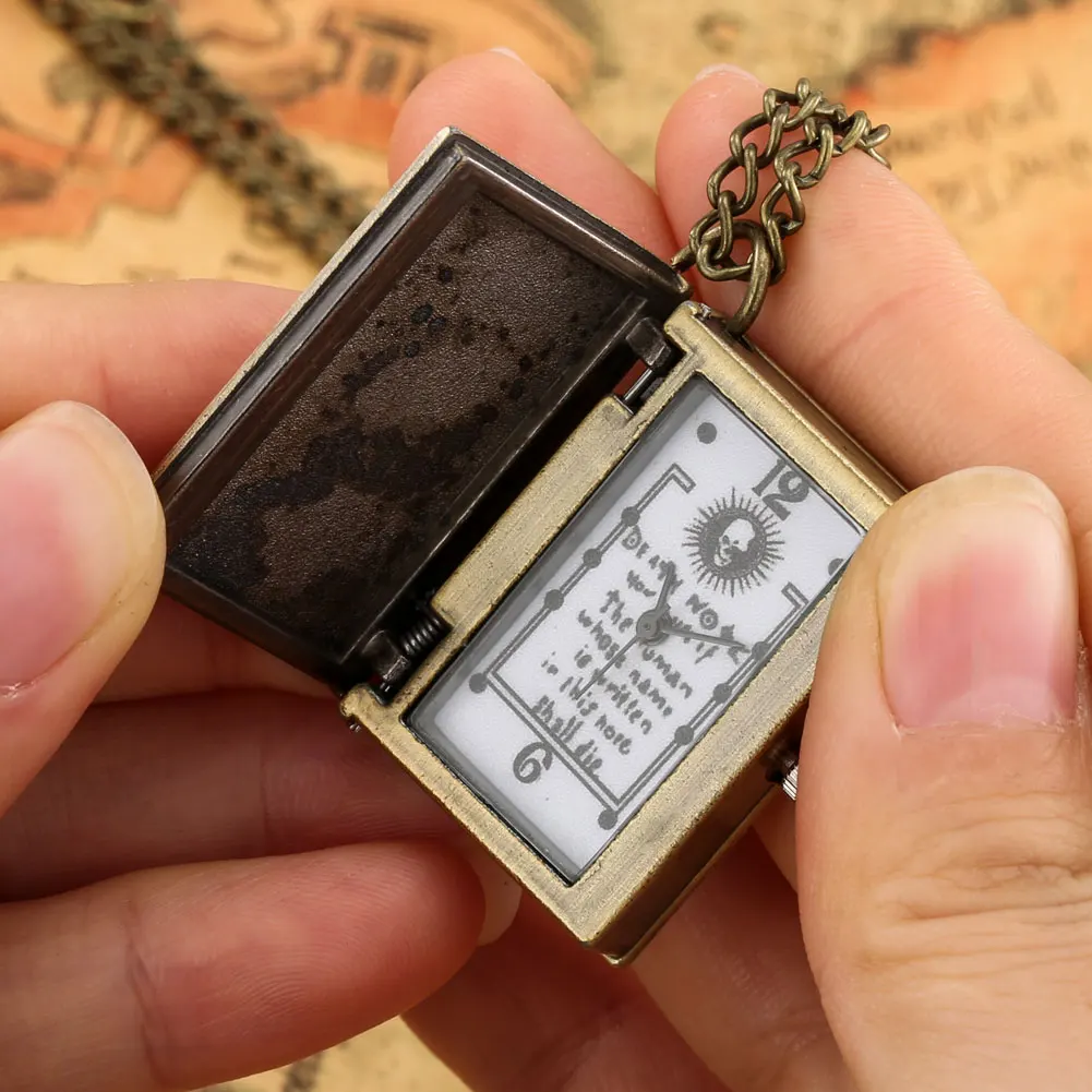 Мини маленькая звезда смерти записная книжка квадратный Форма кварцевые карманные часы винтажное ожерелье кулон ювелирные изделия для детей смертная записка