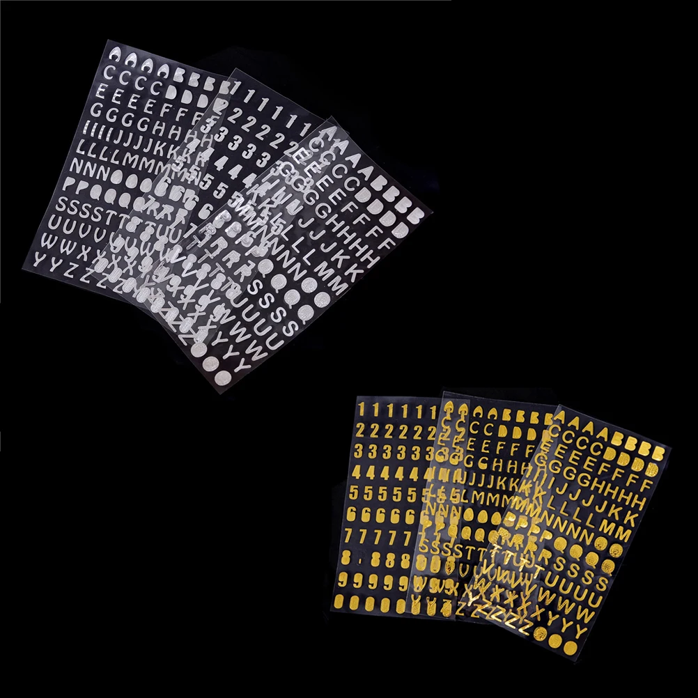 100% новый и высокое качествоМатериал: бронзовая наклейкаЦвет: серебристый, золотойРазмеры: 21,5*10 см Посылка включает в себя: 3 наклейки (1 стикер с номером листа + 2 наклейки с буквами)