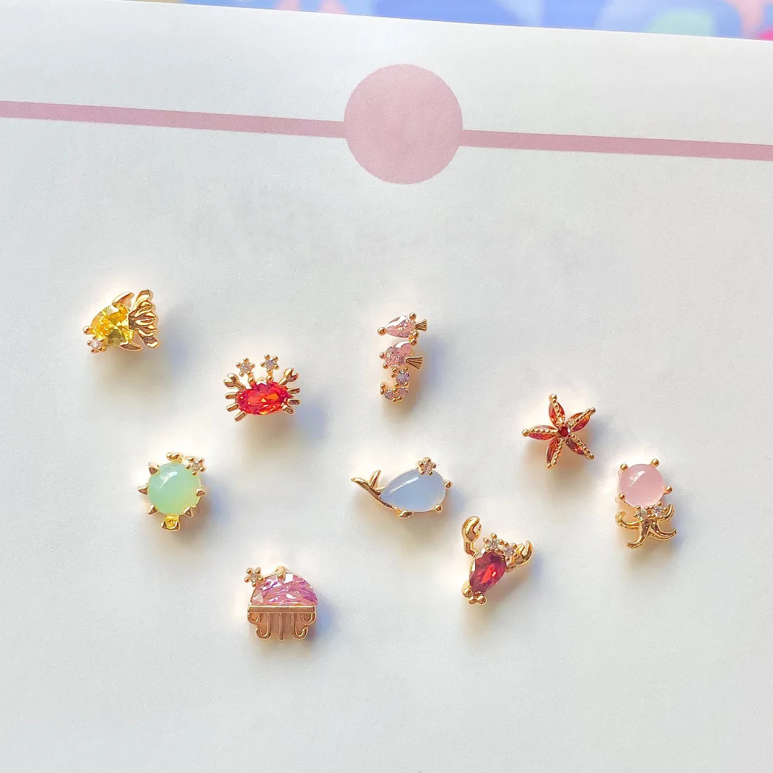 100% 925 пробы серебро Позолоченные ювелирные изделия из вермиля изящный мульти пирсинг Маленький милый под морем серьги-гвоздики из кубического циркония
