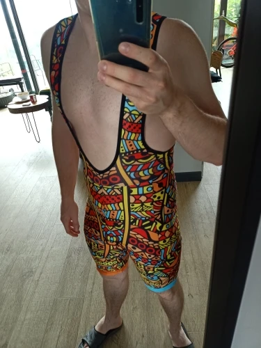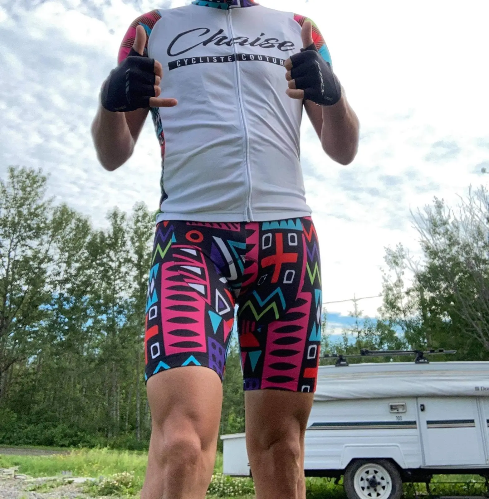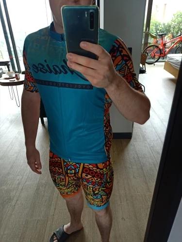 Roupa de ciclismo muito boa, com costuras precisas. Estampa colorida que chama atenção.