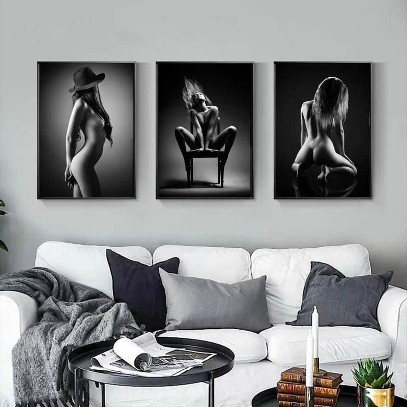 Черная сексуальная обнаженная женская фигурка, холст, картина на стену, плакаты, принты, настенные картины, картины для украшения гостиной