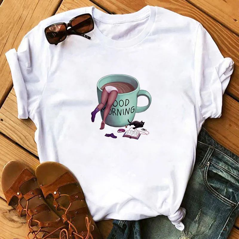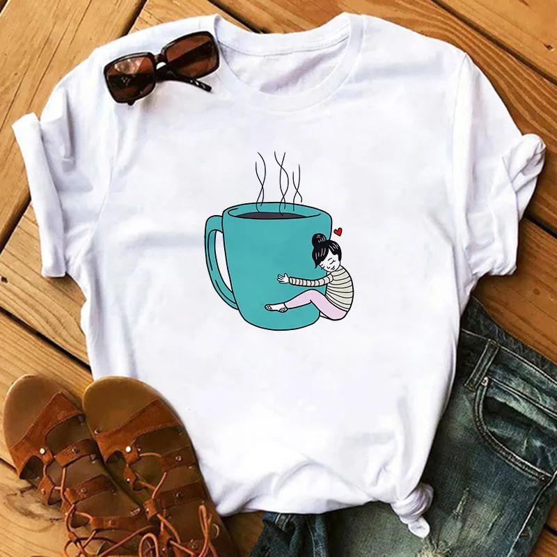Футболка женская с принтом Love coffee, смешной топ с принтом, уличная одежда в стиле Харадзюку, лето 90-х