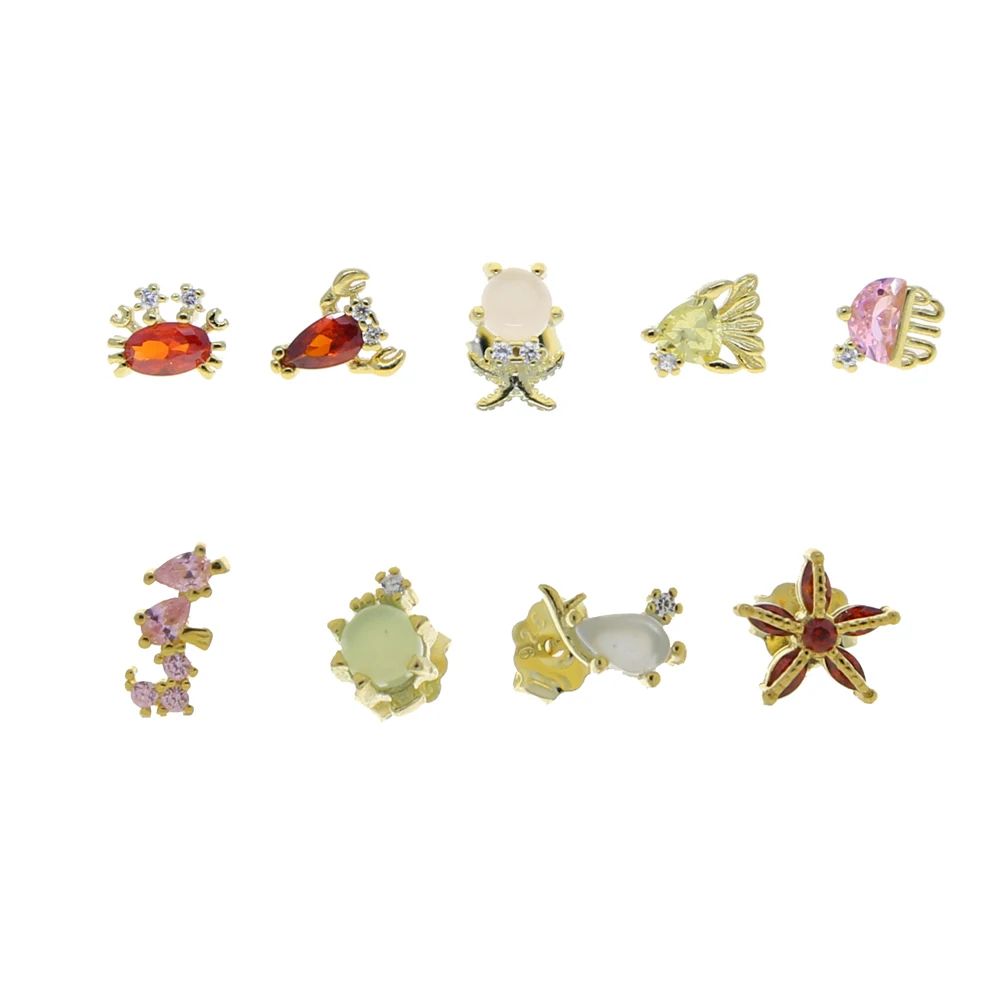 925 пробы серебро нежные изысканные мульти пирсинг крошечный маленькие милые под водой, серьги-гвоздики с позолоченное серебро CZ серьги Для женщин ювелирные изделия