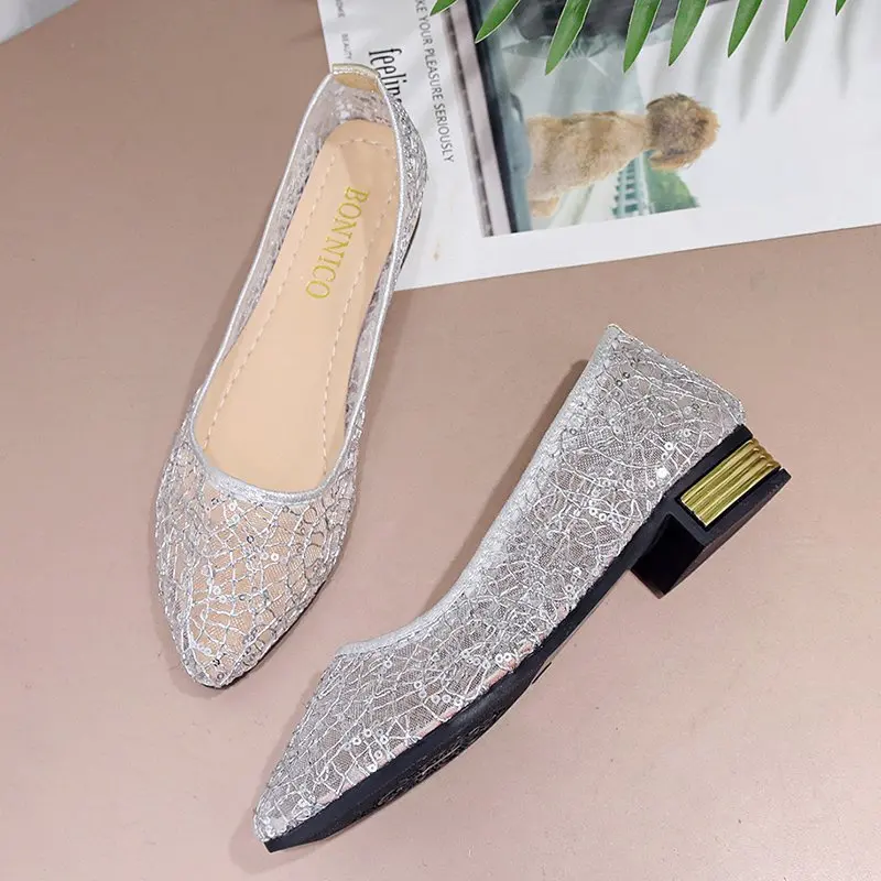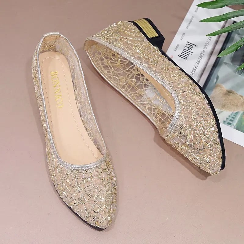 Полые кружевные плоские туфли для женщин Летняя обувь без застежек; Лоферы из дышащего материала; Повседневная женская обувь; Модные золотого, серебряного цвета; Туфли на плоской подошве va805