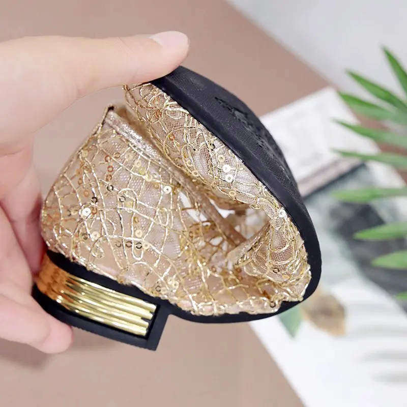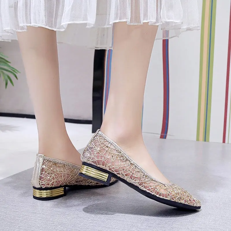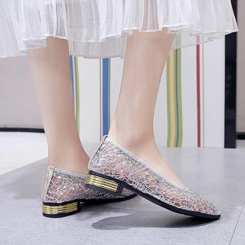 Женские ажурные сетчатые шлепанцы, винтажные туфли-лодочки с квадра...
