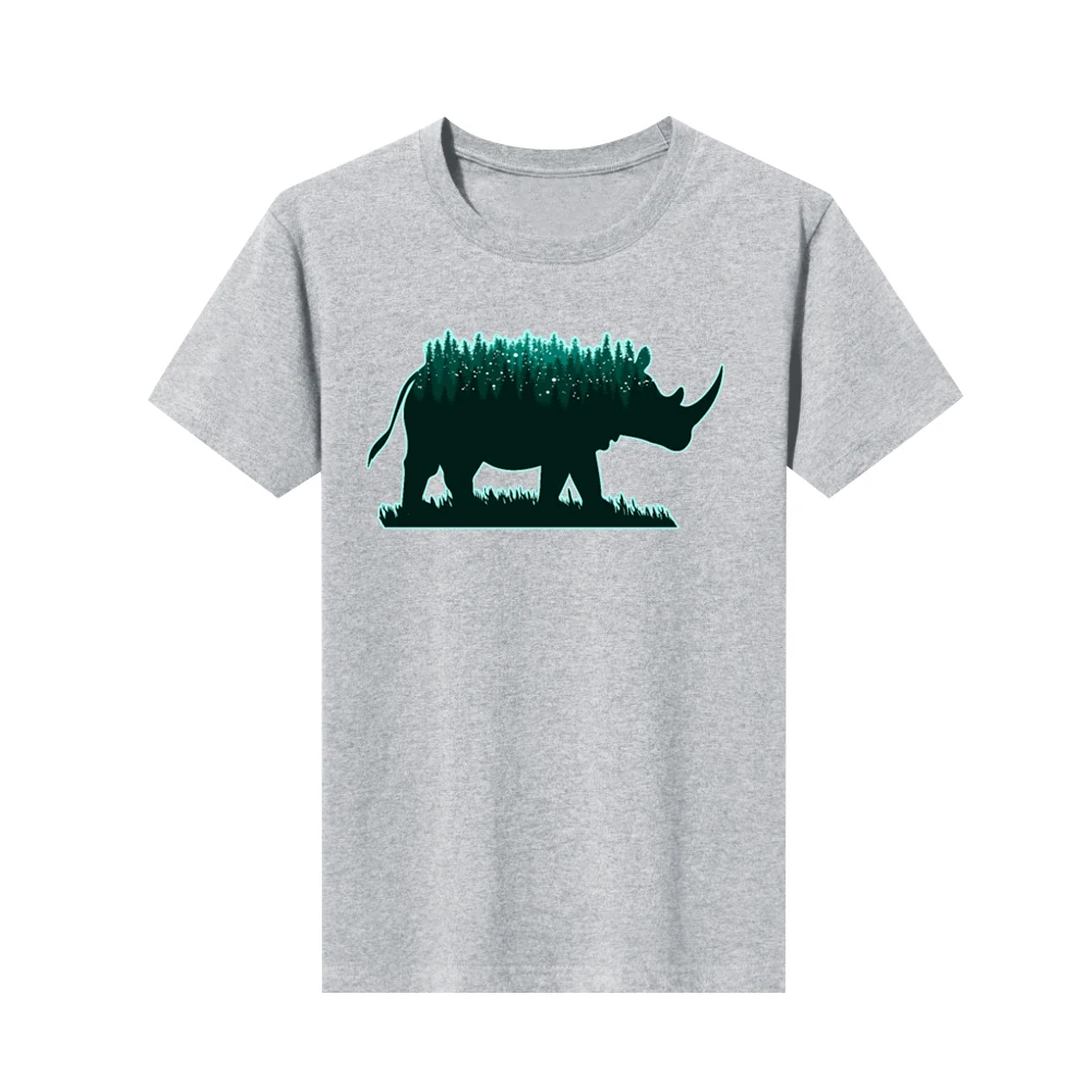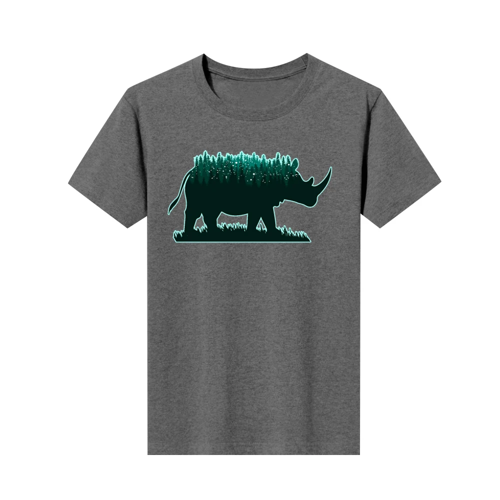 Одежда с принтом, новинка, футболка с О-образным вырезом Зеленый носорог идея носорог подарок изготовление под заказ с короткими рукавами из хлопка для девочек верхняя мужская мода