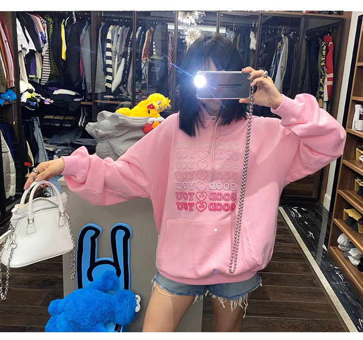 Толстовка Женская с длинным рукавом, модный винтажный Свитшот оверсайз с надписью, однотонный пуловер в Корейском стиле, осенняя одежда