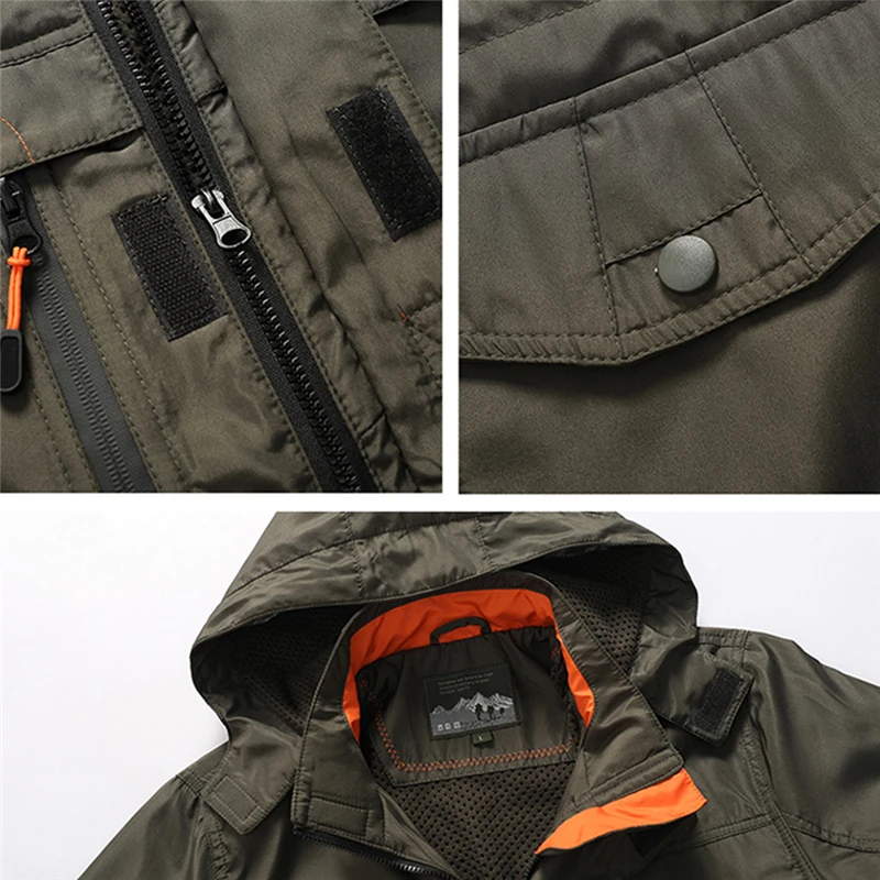 Куртка мужская быстросохнущая, тактическая ветровка с капюшоном, много карманов, стиль милитари, водонепроницаемый Бомбер, размера плюс 4XL, осень