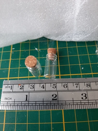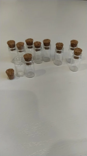 Симпатичные маленькие бутылки/Флаконы! Точно так же, как и их изображение и больше, но настолько маленький, что подойдет для множества кукольных домиков/миниатюрных пейзажей/диормасов. Доставка была очень быстрой, хорошо в течение 3 недель! И ПРОДАВЕЦ сделал отличную работу в упаковке.