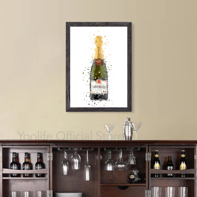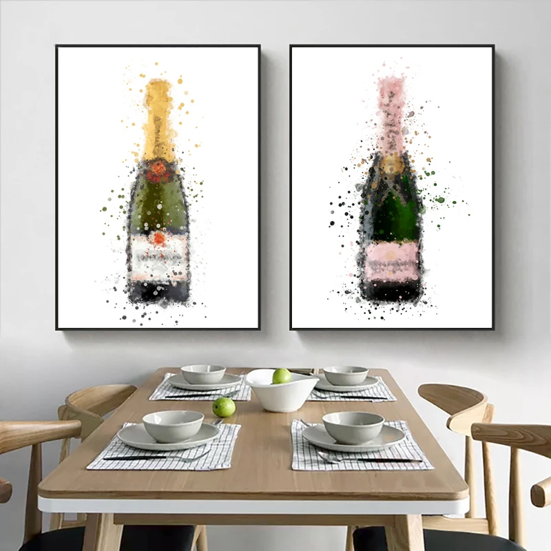 Шампанское спирт граффити фотографии Ресторан настенные художественные модульные холст постер Современная Акварель для прикроватного фона Декор