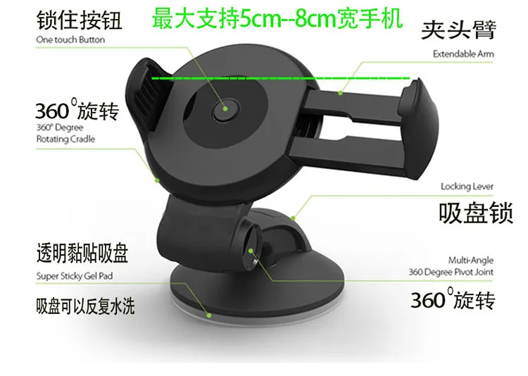 Автомобильный держатель для телефона на присоскеВращающийся на 360 ° Автомобильный держатель для телефонаПоддержка мобильных телефонов шириной до 50-80 ммУникальная формаДля лобового стекла или приборной панели, рабочего стола