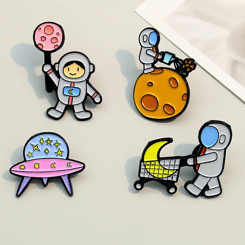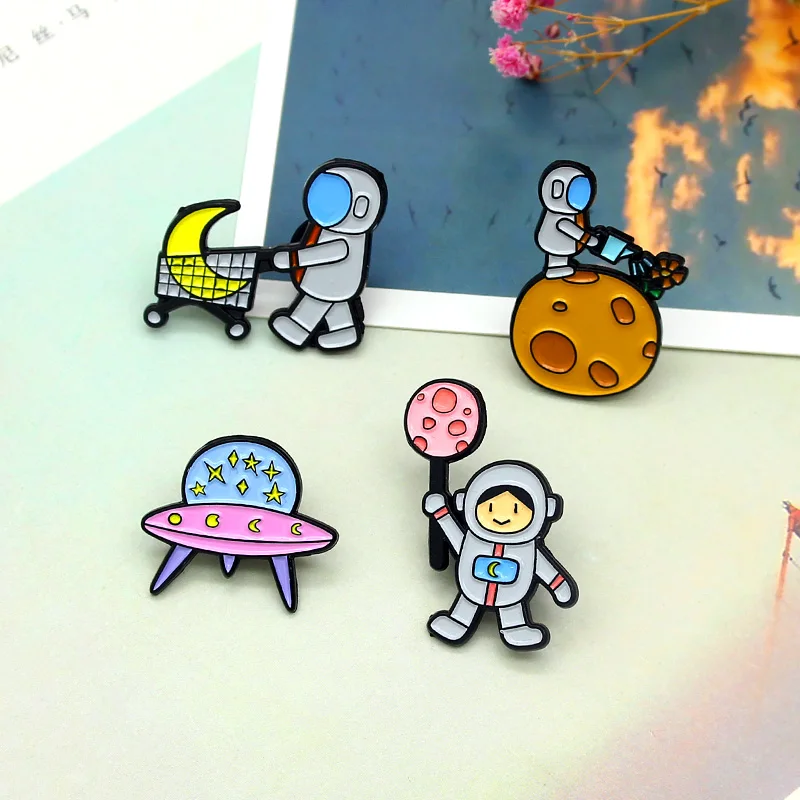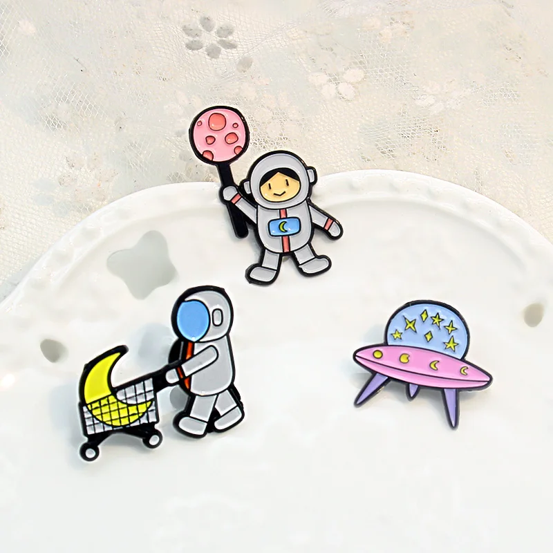 Счастливую жизнь астронавтов эмалевая брошь корзина Луна летающая тарелка воздушный шарик "Планета" Мороженое штырь отворотом пользовательские значки
