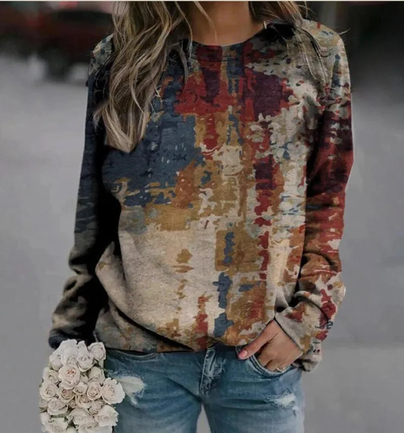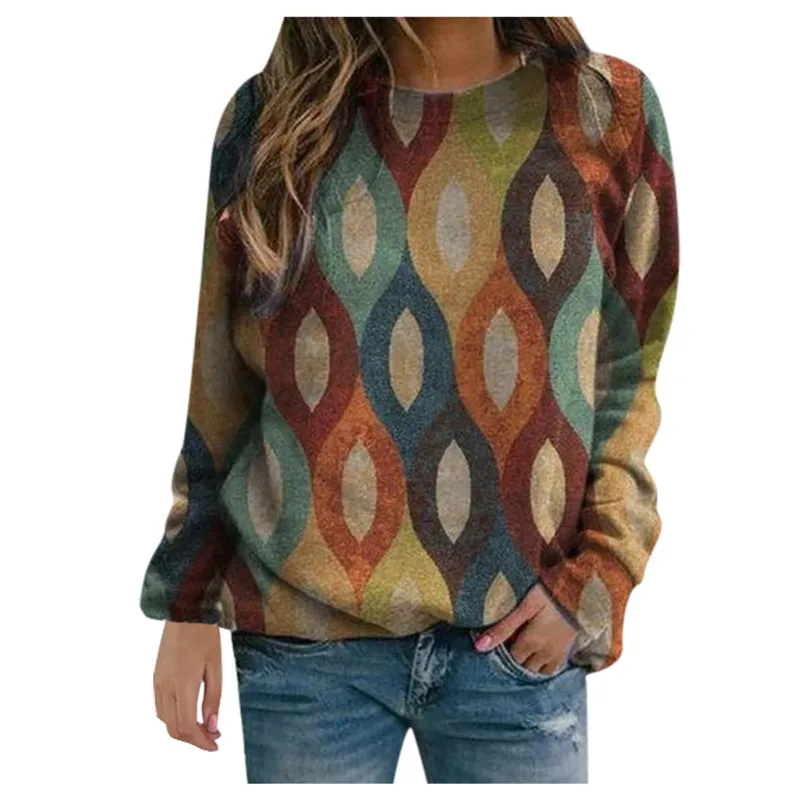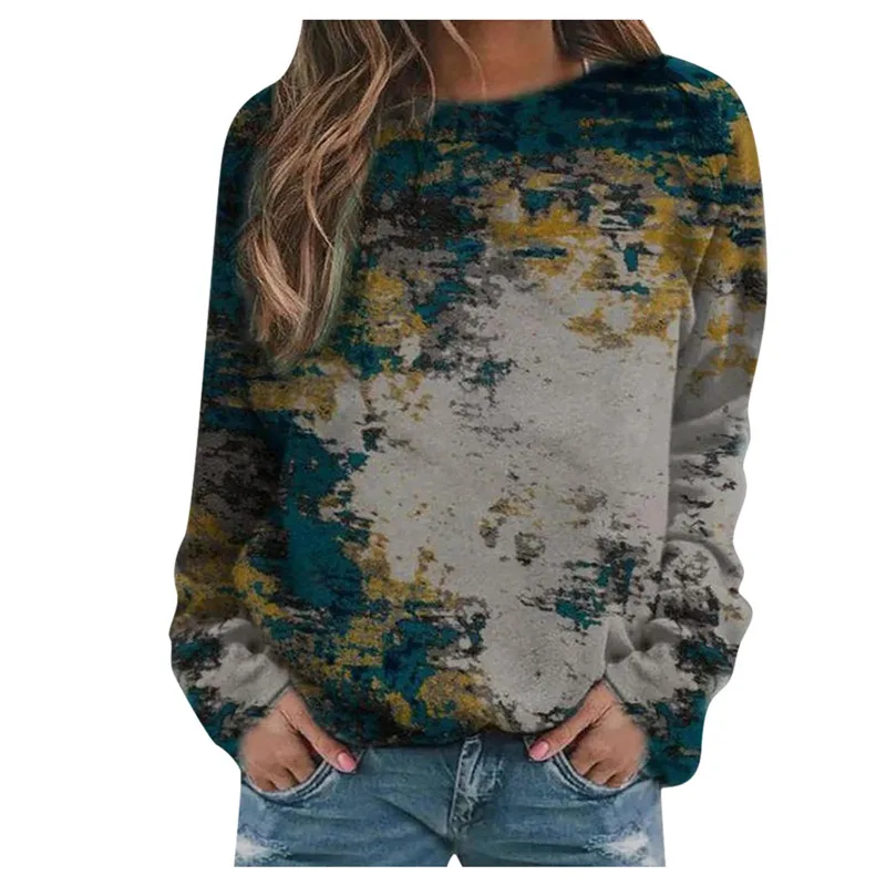 Женская футболка с принтом тай-дай, Повседневная Свободная футболка бохо, с круглым вырезом, осень 2021 г., футболка с длинным рукавом