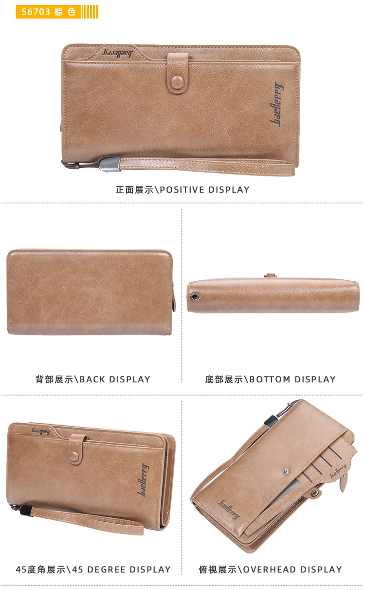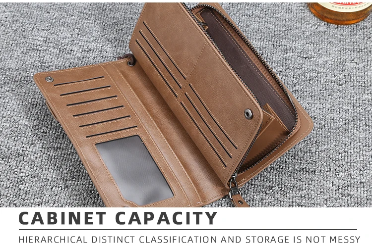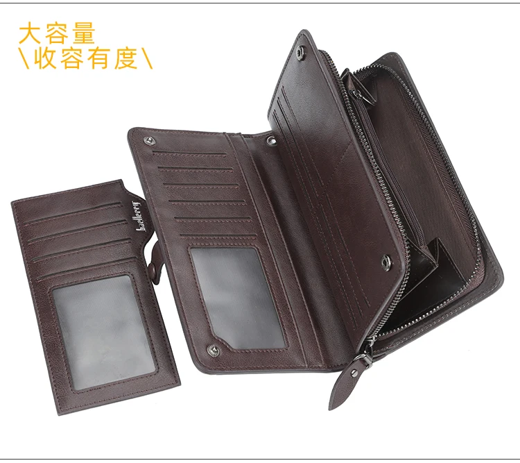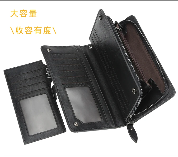 Мужской Длинный кошелек, дизайнерский кошелек на молнии, с отделением для карт, кожаный кошелек, однотонный Кошелек для монет, высокое качество, 2021
