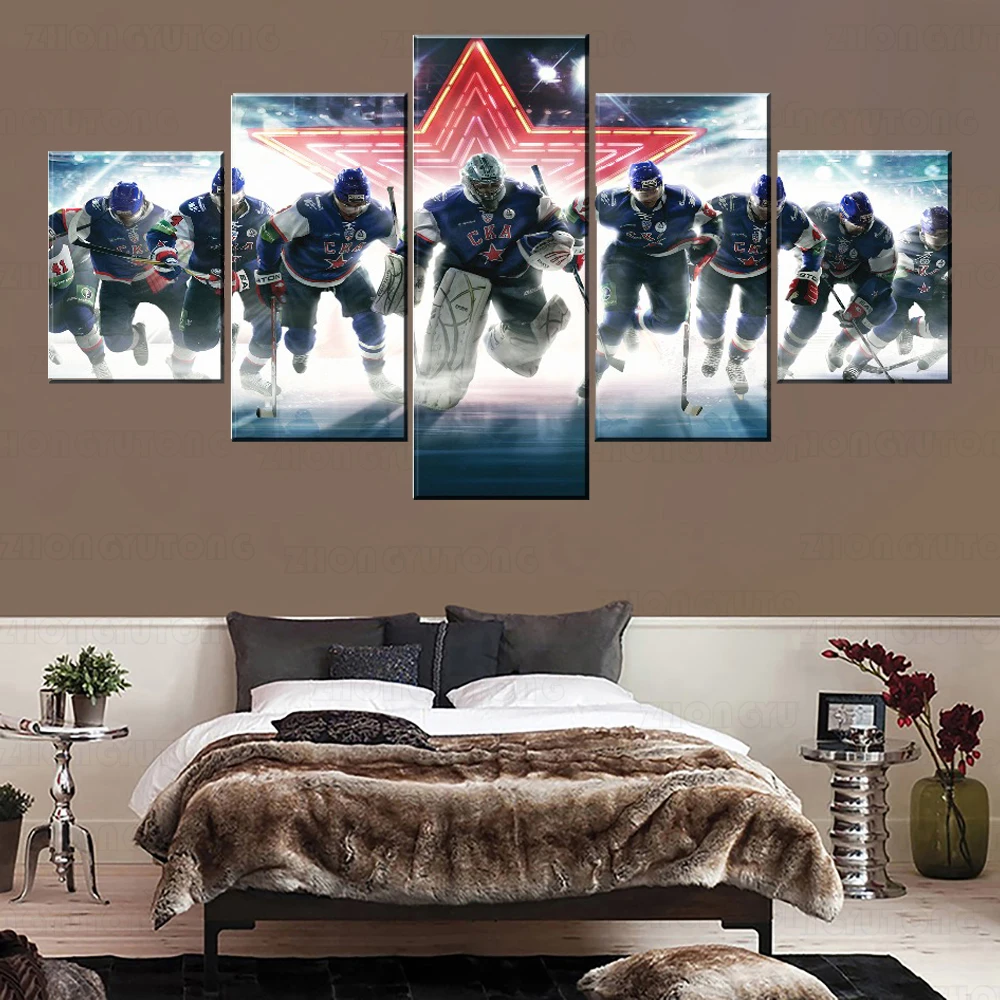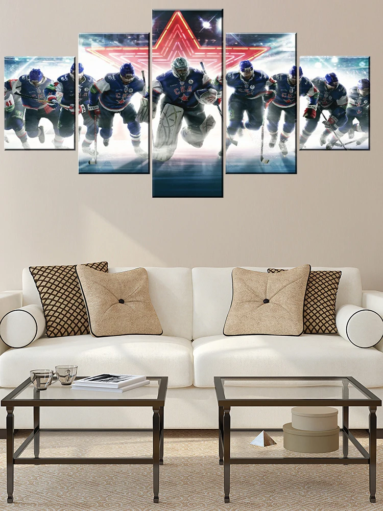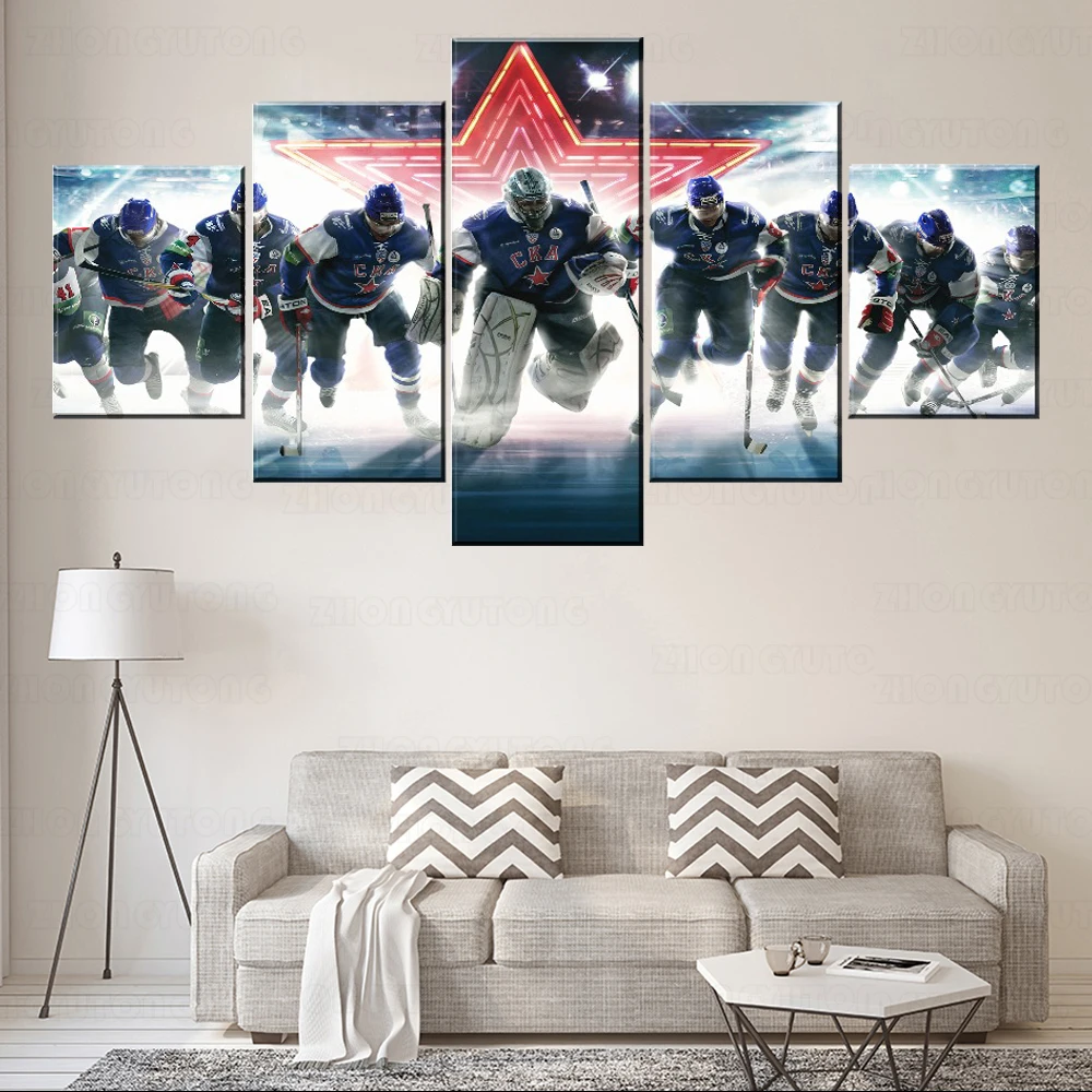 Настенный художественный холщовый постер с HD-печатью, 5 шт., Спортивная картина для хоккейной команды для спальни, домашняя декоративная картина, рама или без рамки