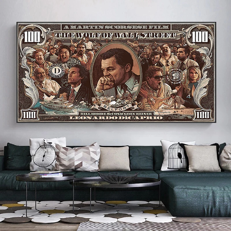 Граффити уличные деньги искусство 100 долларов холст живопись плакаты и принты волк Уолл-арт поп-арт для декора гостиной