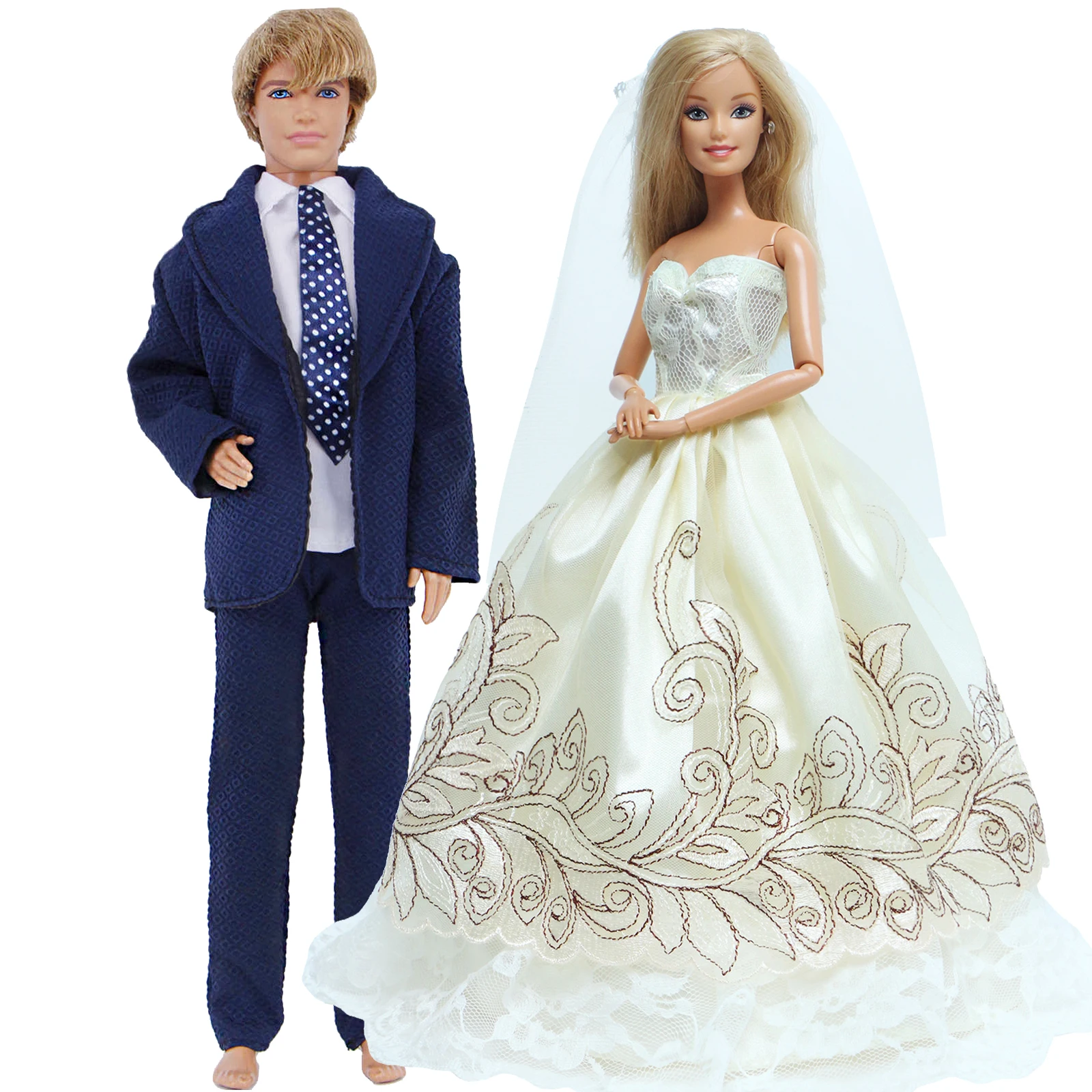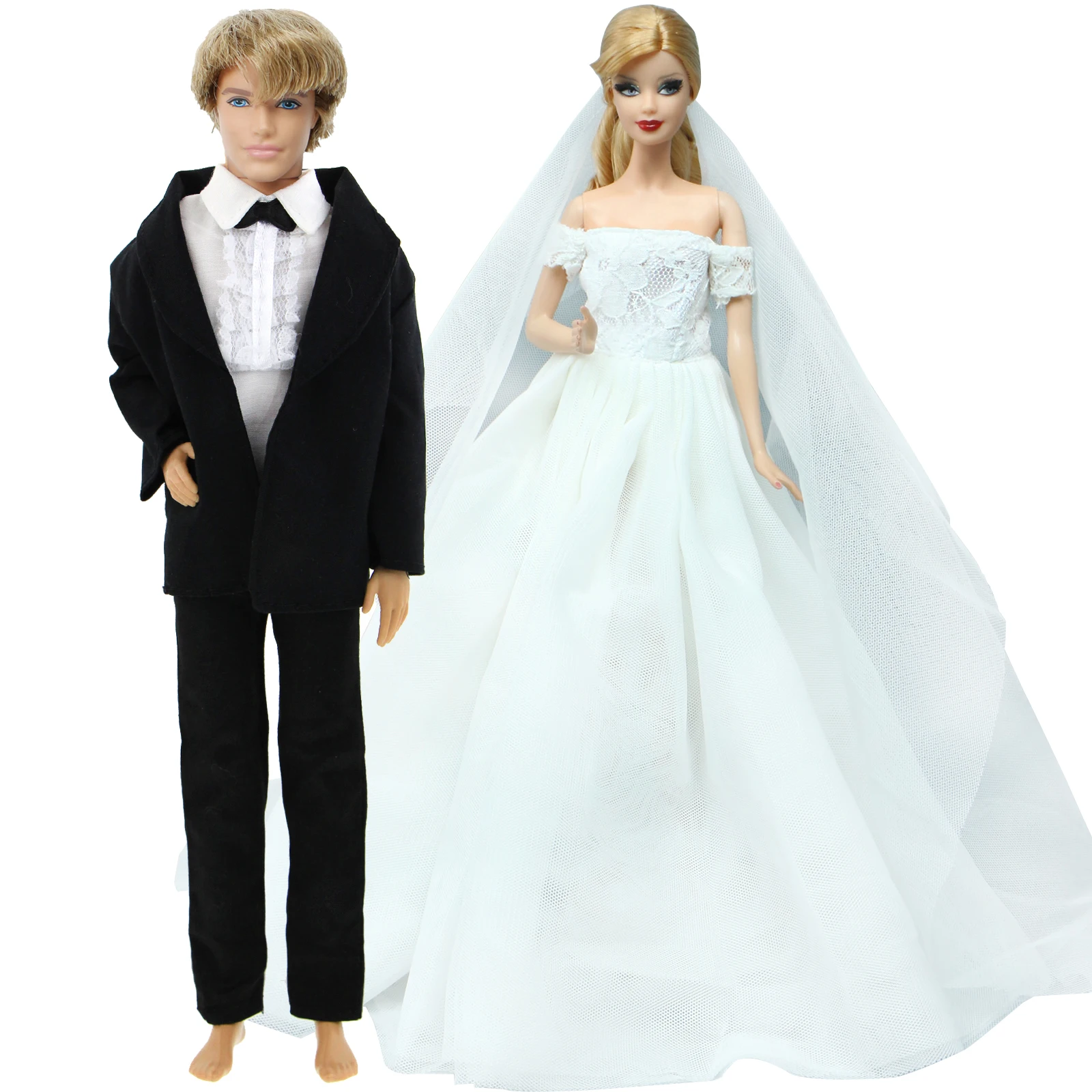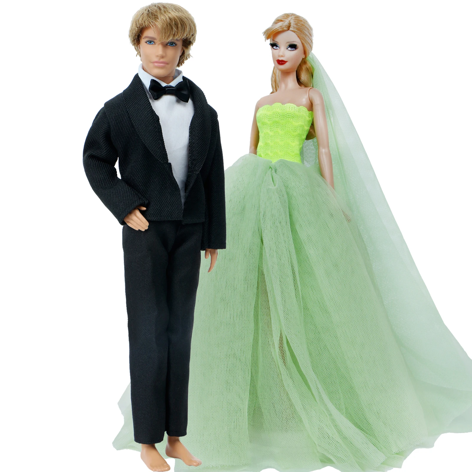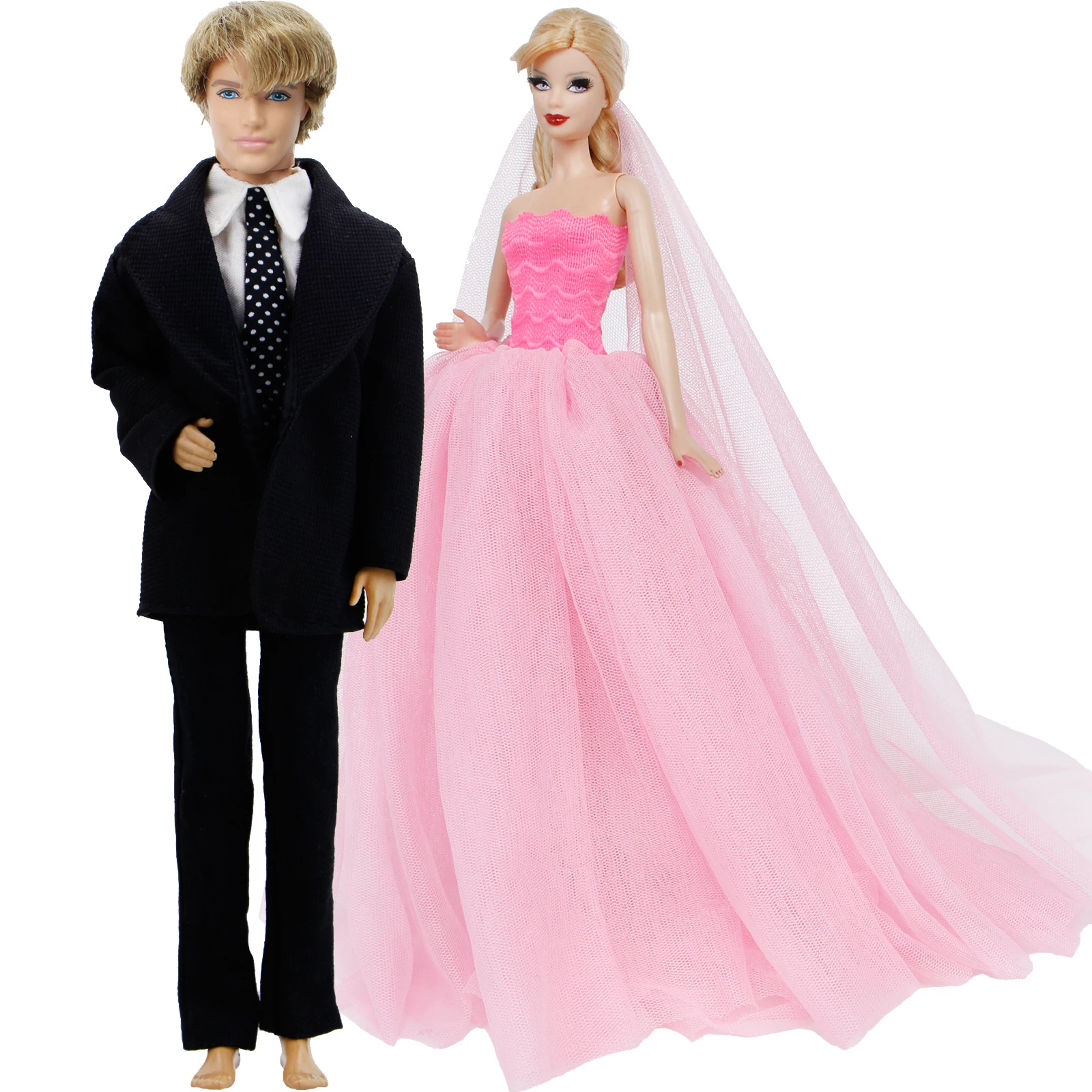 2 комплекта, свадебные наряды в разных стилях, мужской костюм, смокинг, платье невесты Вечерние вечернее бальное платье, аксессуары, Одежда для куклы Барби, для куклы Кена