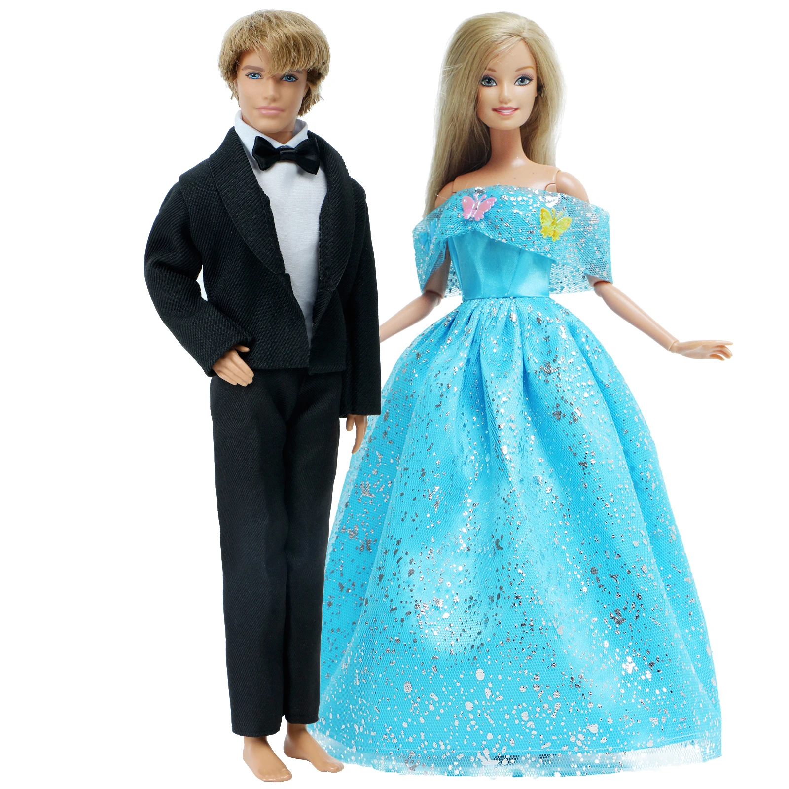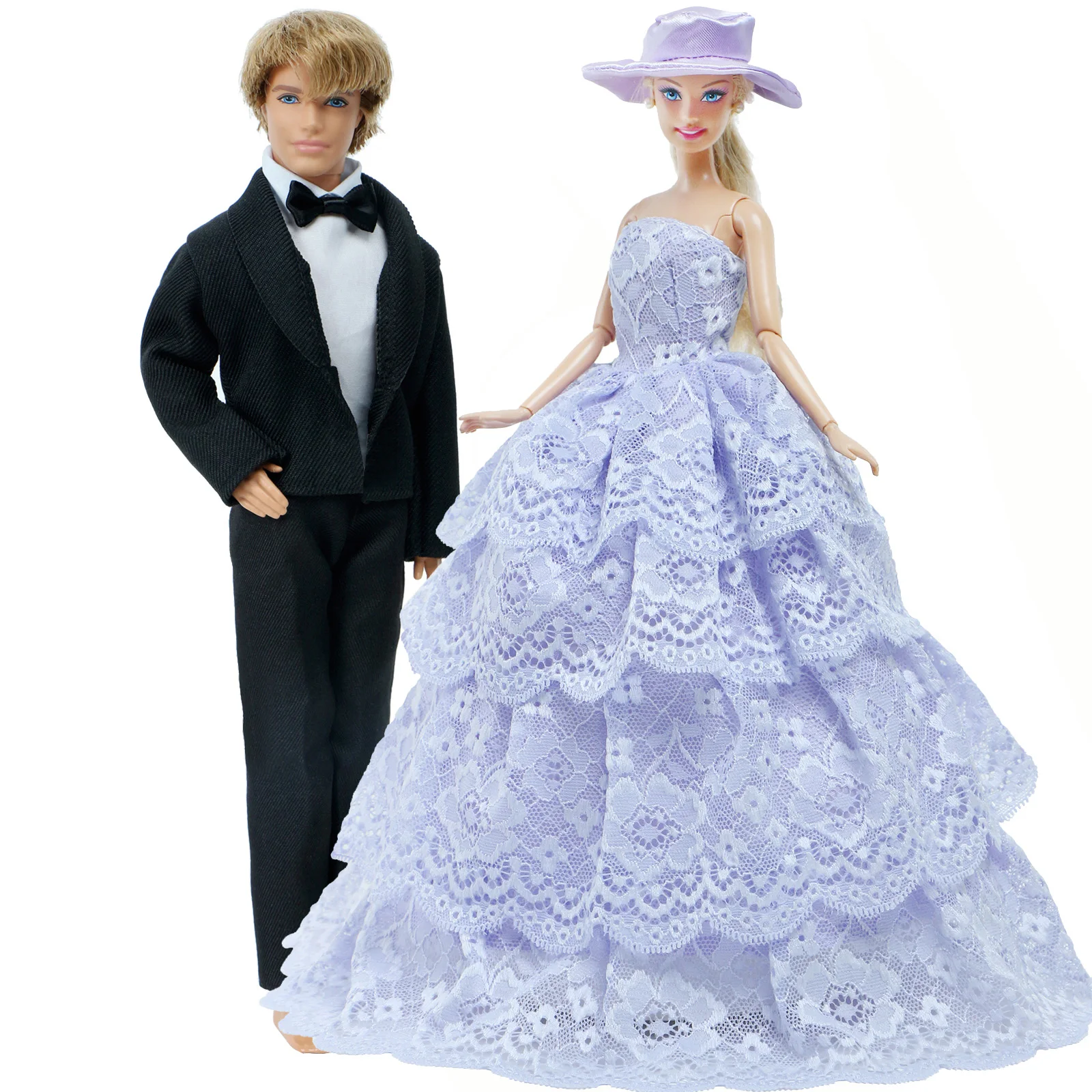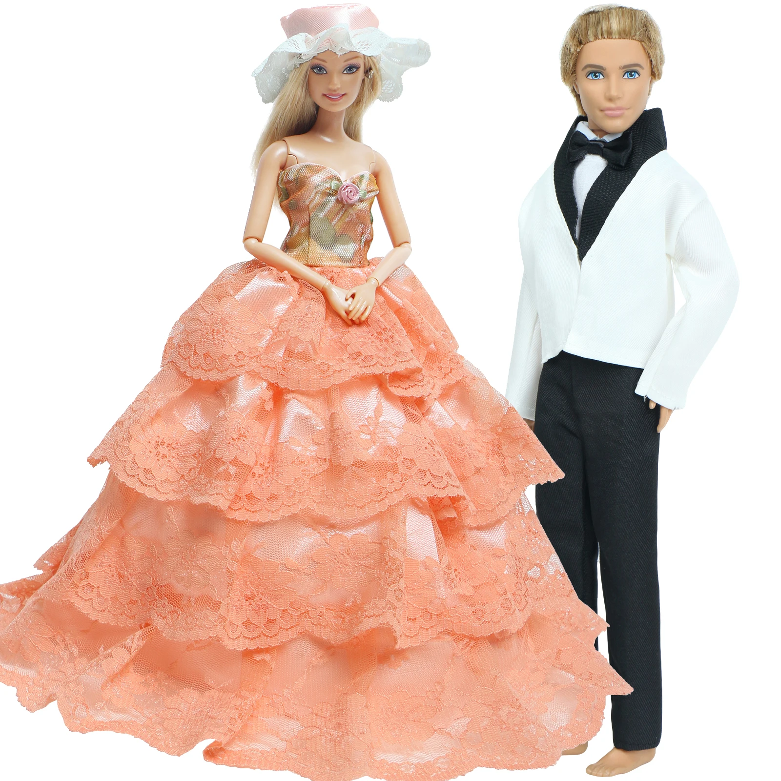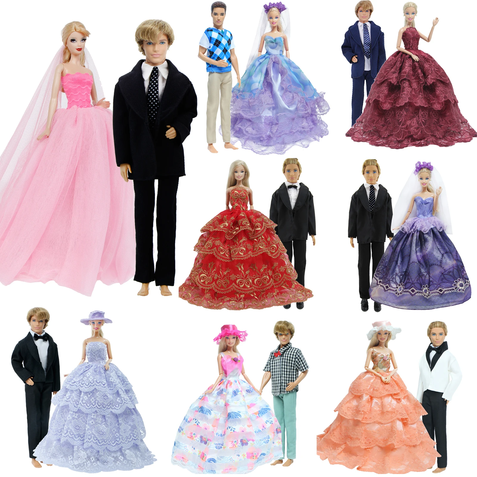 2 комплекта, свадебные наряды в разных стилях, мужской костюм, смокинг, платье невесты Вечерние вечернее бальное платье, аксессуары, Одежда для куклы Барби, для куклы Кена