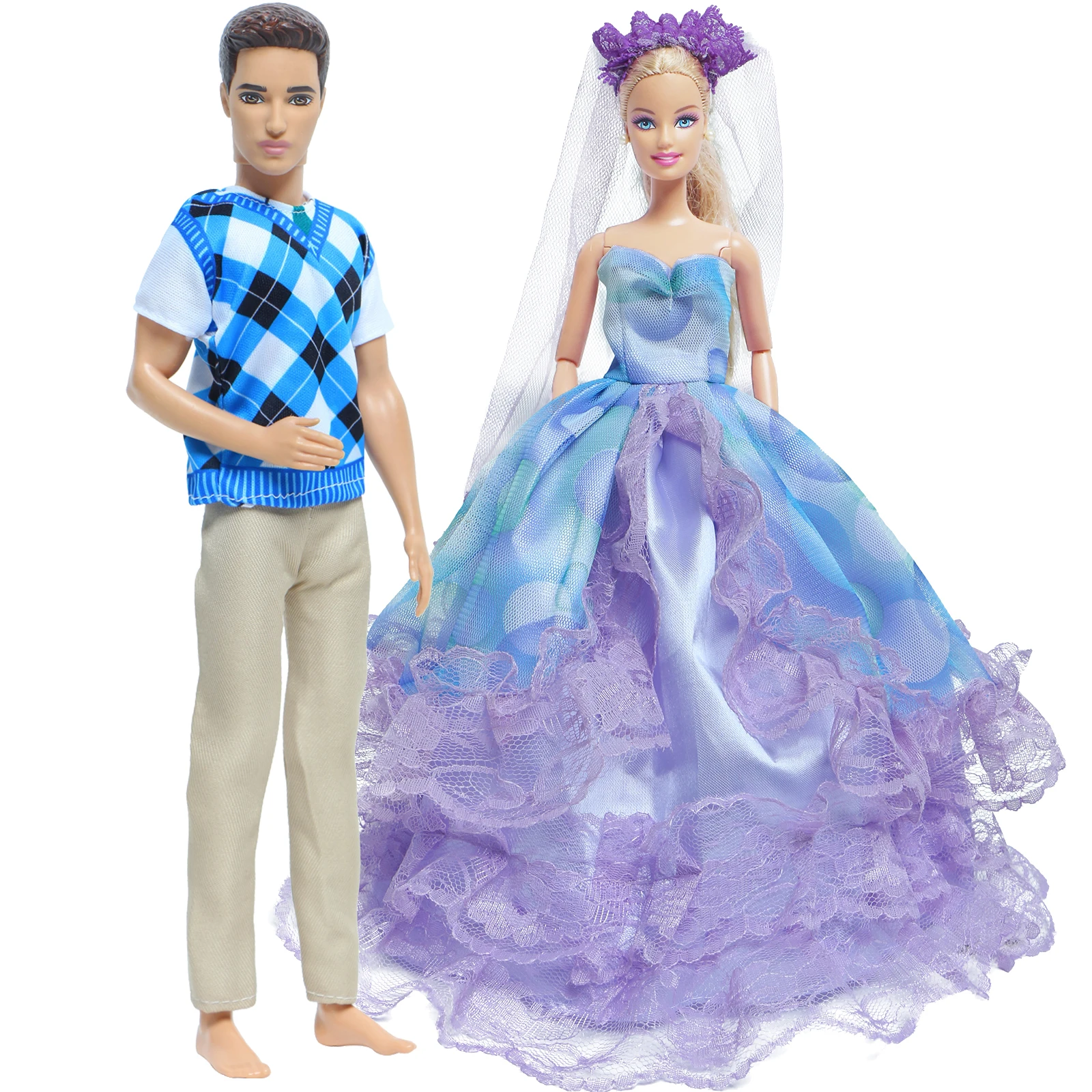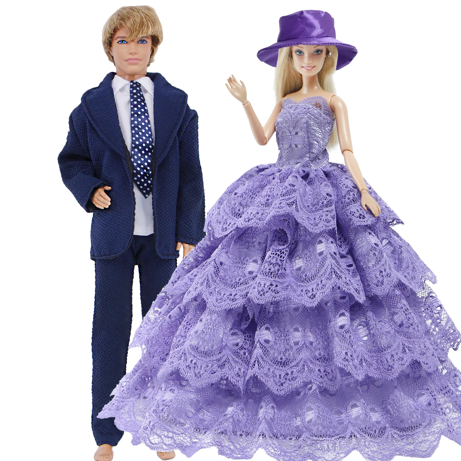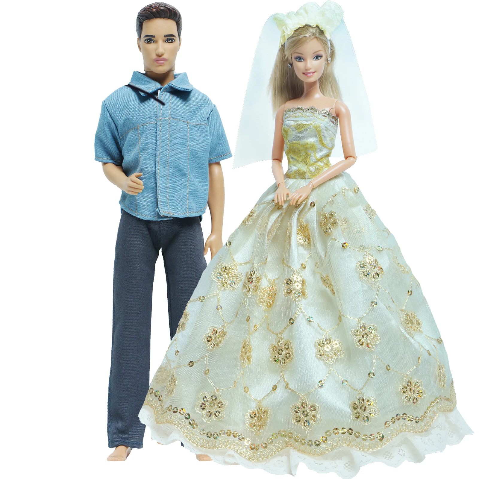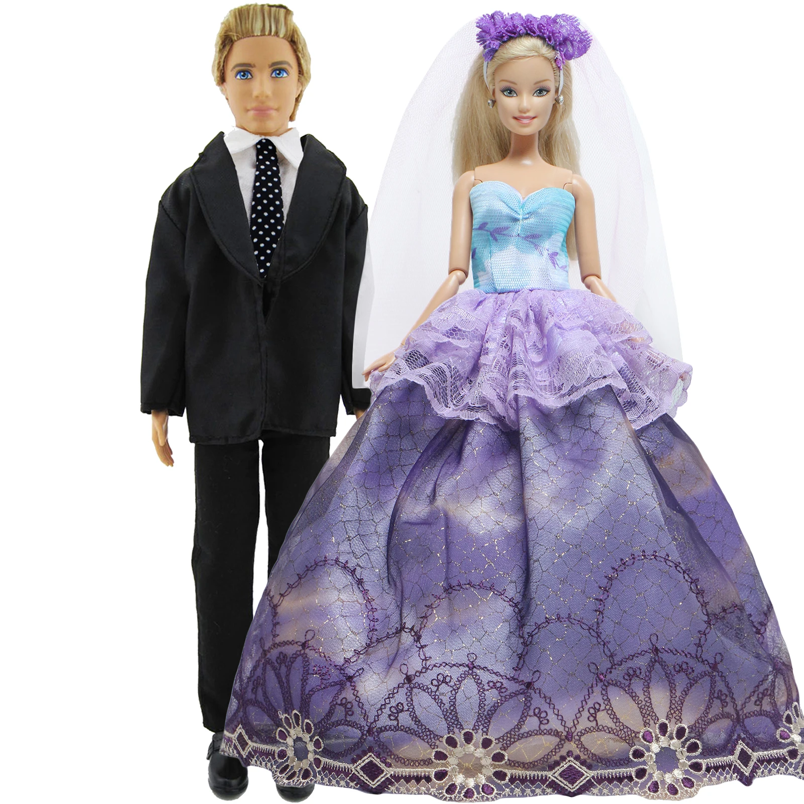 2 комплекта, свадебные наряды в разных стилях, мужской костюм, смокинг, платье невесты Вечерние вечернее бальное платье, аксессуары, Одежда для куклы Барби, для куклы Кена