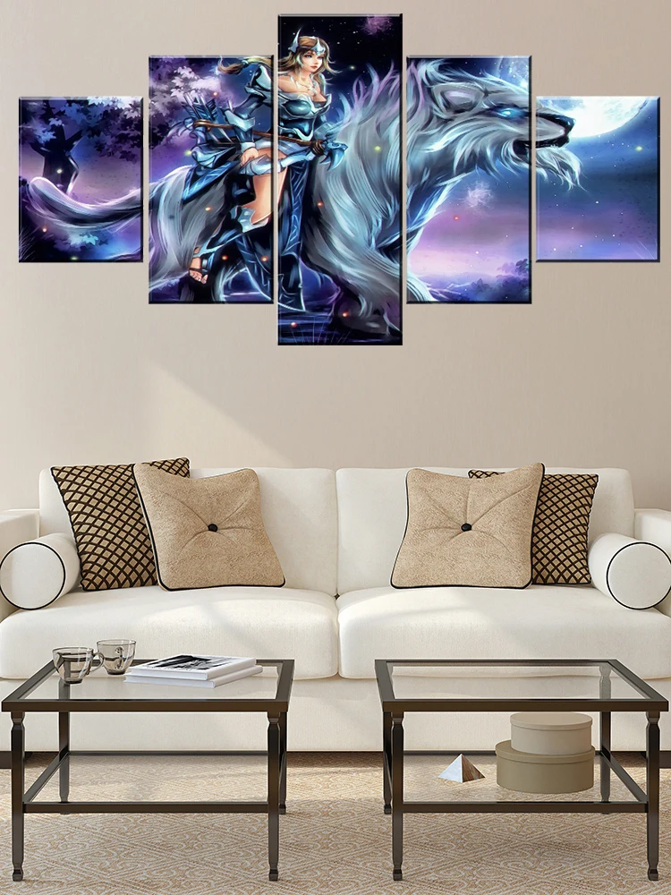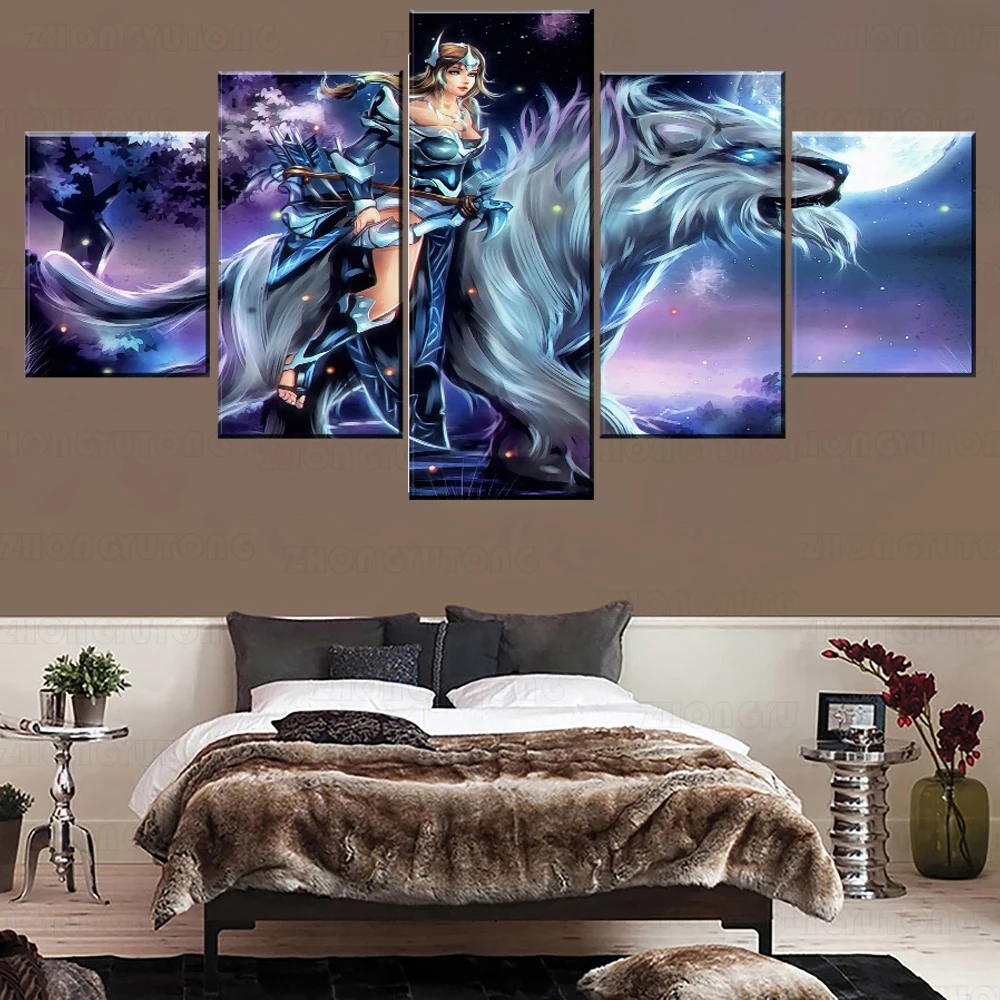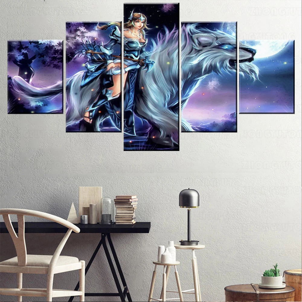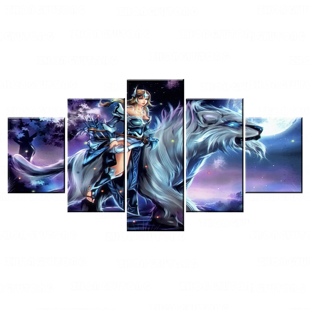 Картина на холсте 5 шт. луна ночь DotA 2 чудовище и воин Мирана игровой постер настенное искусство домашний декор Печатный Тип картины