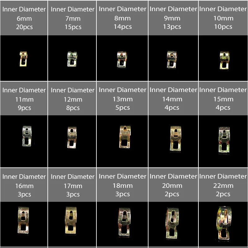 115 шт.6-22 мм Пружинные хомуты для шланга оцинкованные Пружинные зажимы для топливопровода водопровода зажимы для воздушной трубки трубка крепежа Зажимные клещи